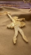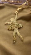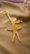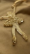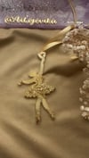 This exquisite handmade ornament, measuring 6 x 12 cm, is crafted as a one-of-a-kind piece. Its shimmering golden accents and elegant design make it a versatile decoration.