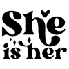 - Front: "She Is Her"—a bold declaration of who you are: a woman of strength, grace, and purpose.