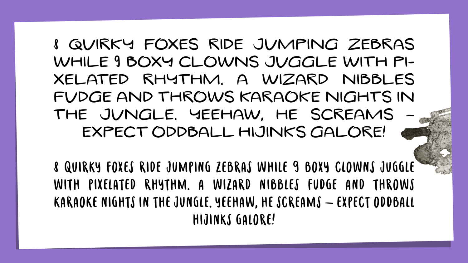 Rough, impulsive, and unexpectedly deliberate – perfect for chaotic headlines, zines, DIY aesthetics, or anything that needs to look like it barely made it to press.