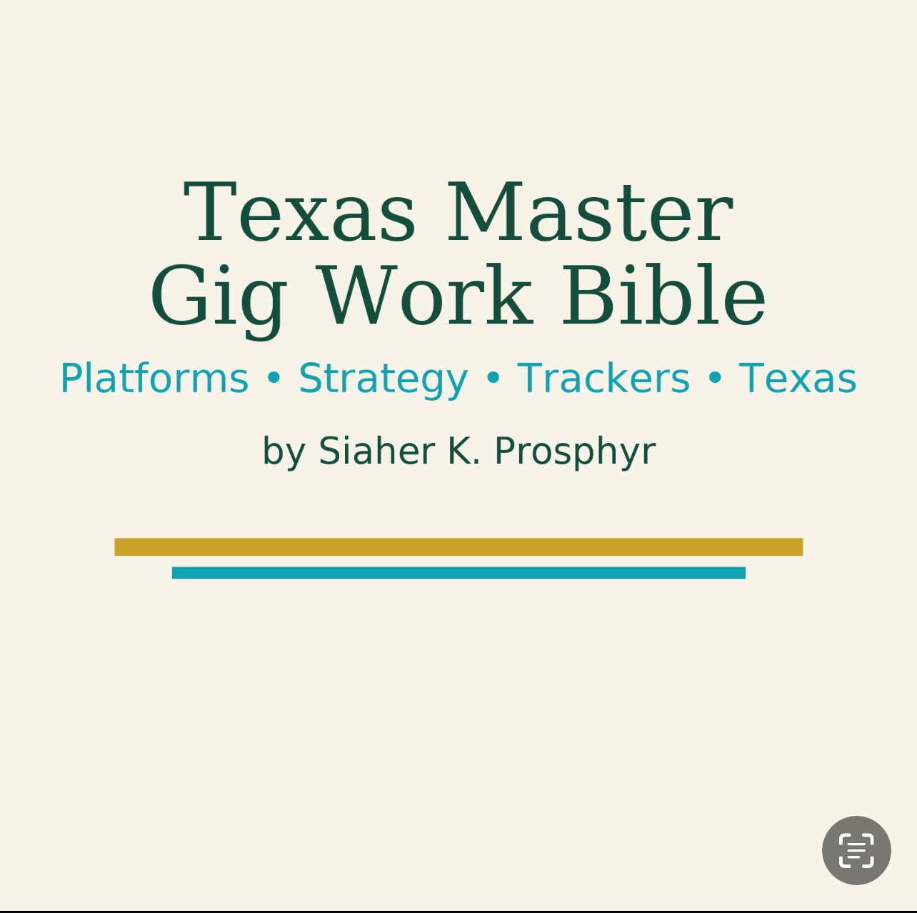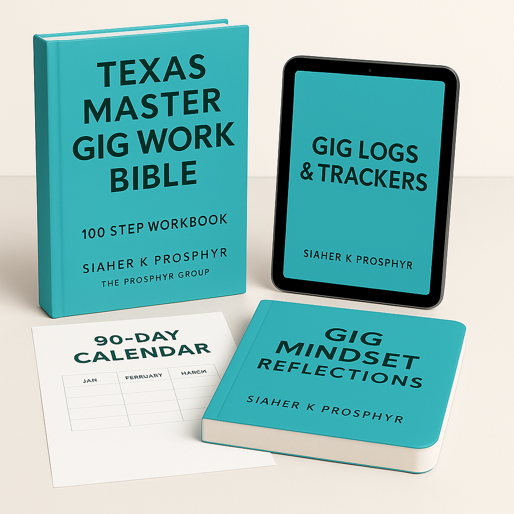 What you get • Master Workbook (186 pages, PDF) — Texas examples + nationwide steps to start, optimize, and scale gig income.