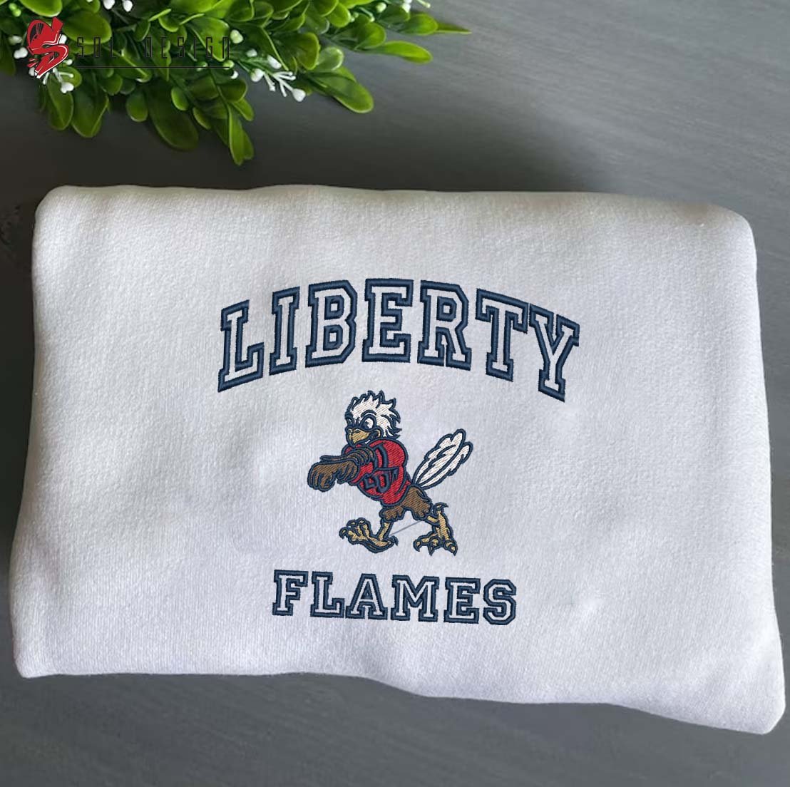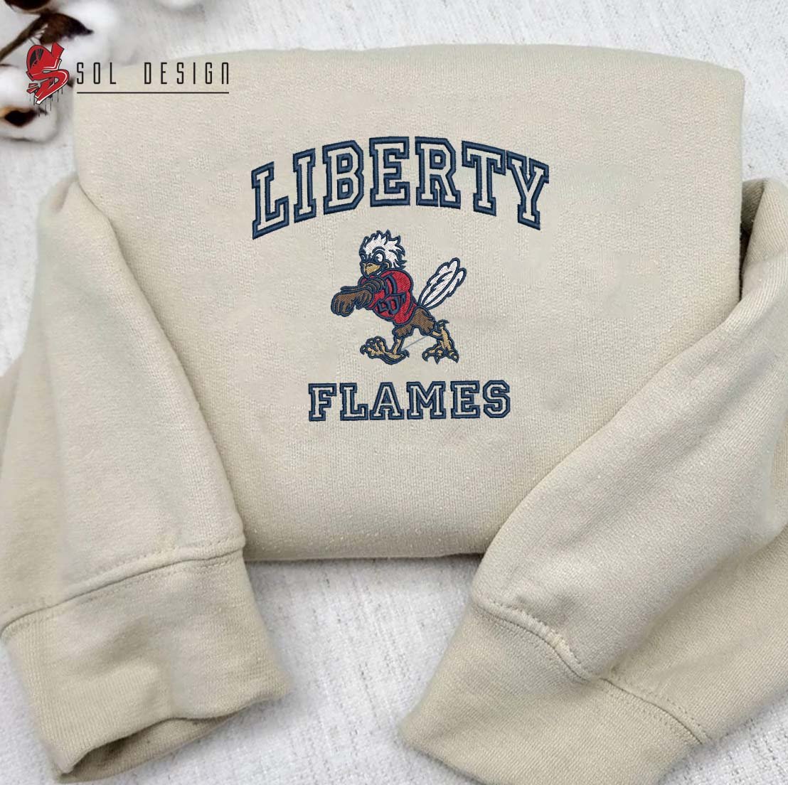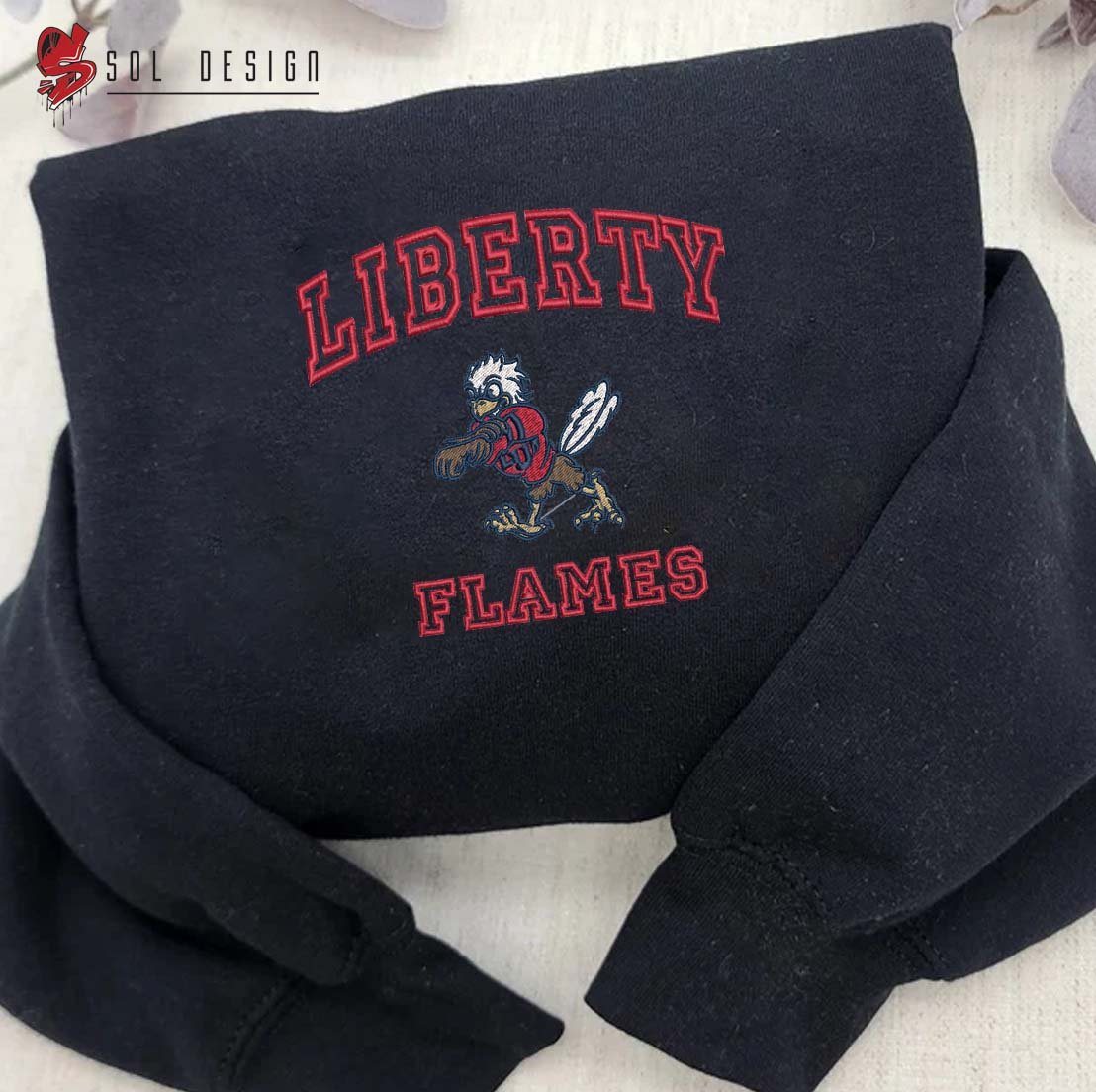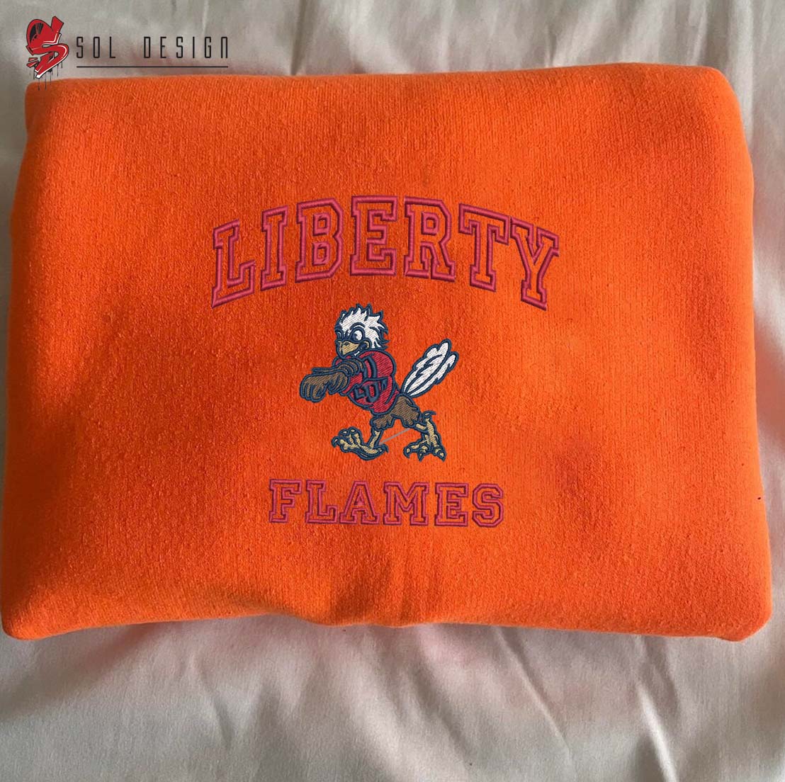 Liberty Flames NCAA College Football Team Embroidered Crewneck, Liberty College Football Embroidered Sweatshirt, NCAA Liberty Flames Team Sweatshirt, Game Day Embroidered Hoodie, T-shirt