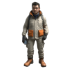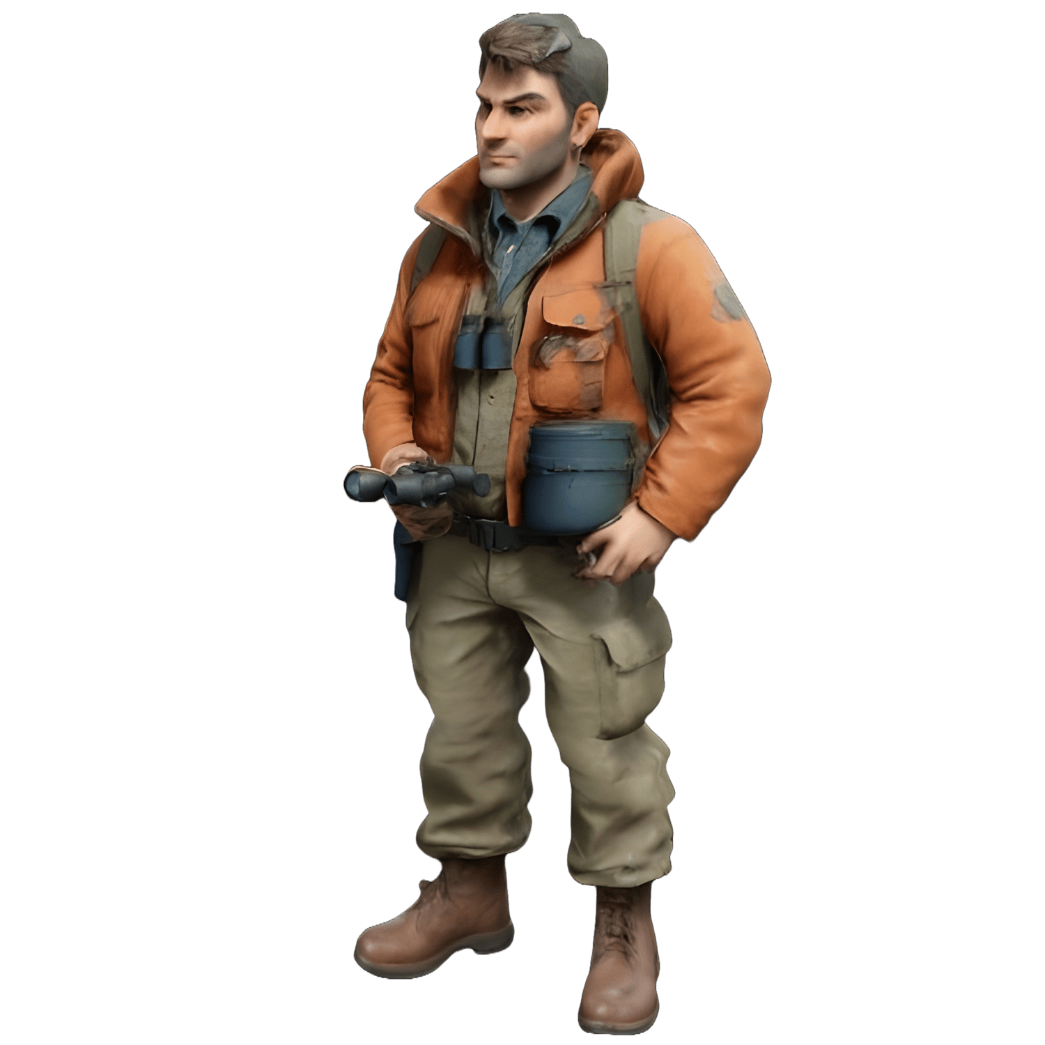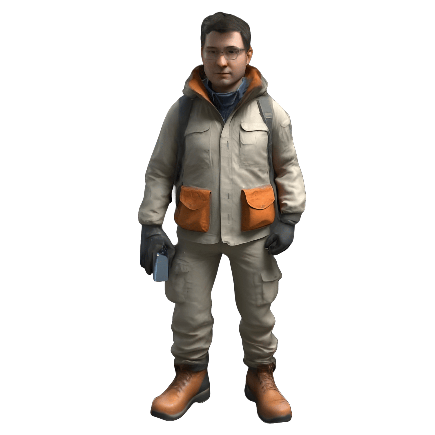 - A casual explorer/researcher in a beige jacket with utility pockets