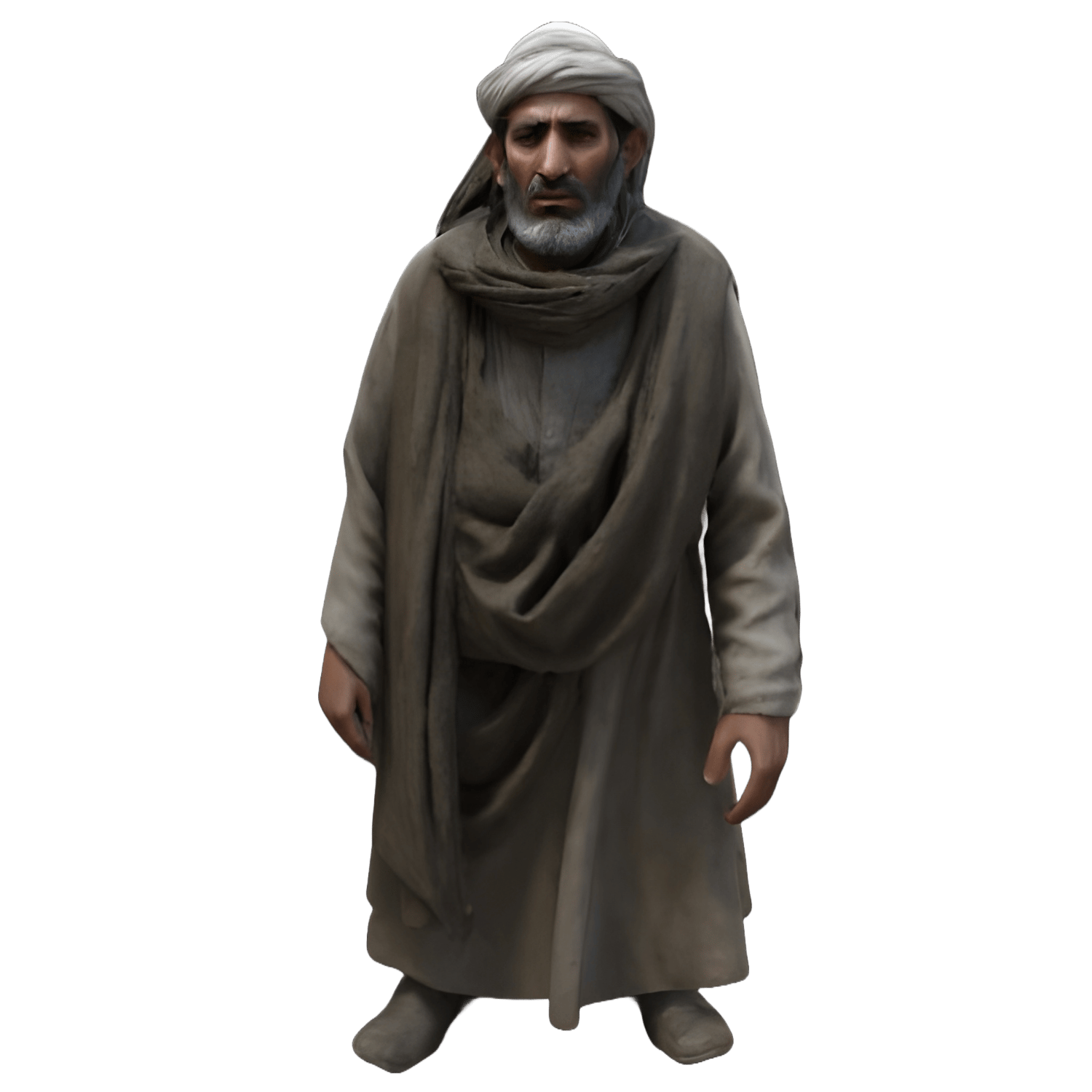 - A figure in traditional Middle Eastern clothing with flowing robes