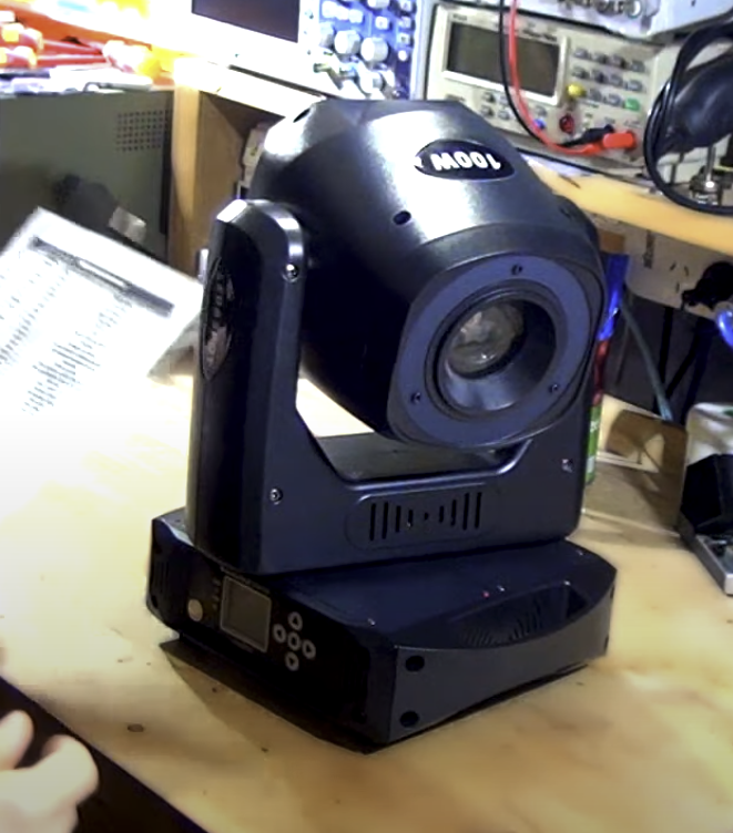 * Verifique, con un Fixture de pruebas (click), que coincidan estos canales: 1 Dimmer Aro Led, 2 en el valor 4 = Aro Led Rojo, 3 Dimmer principal, 10 en el valor 50 = Gobo de la tercer foto