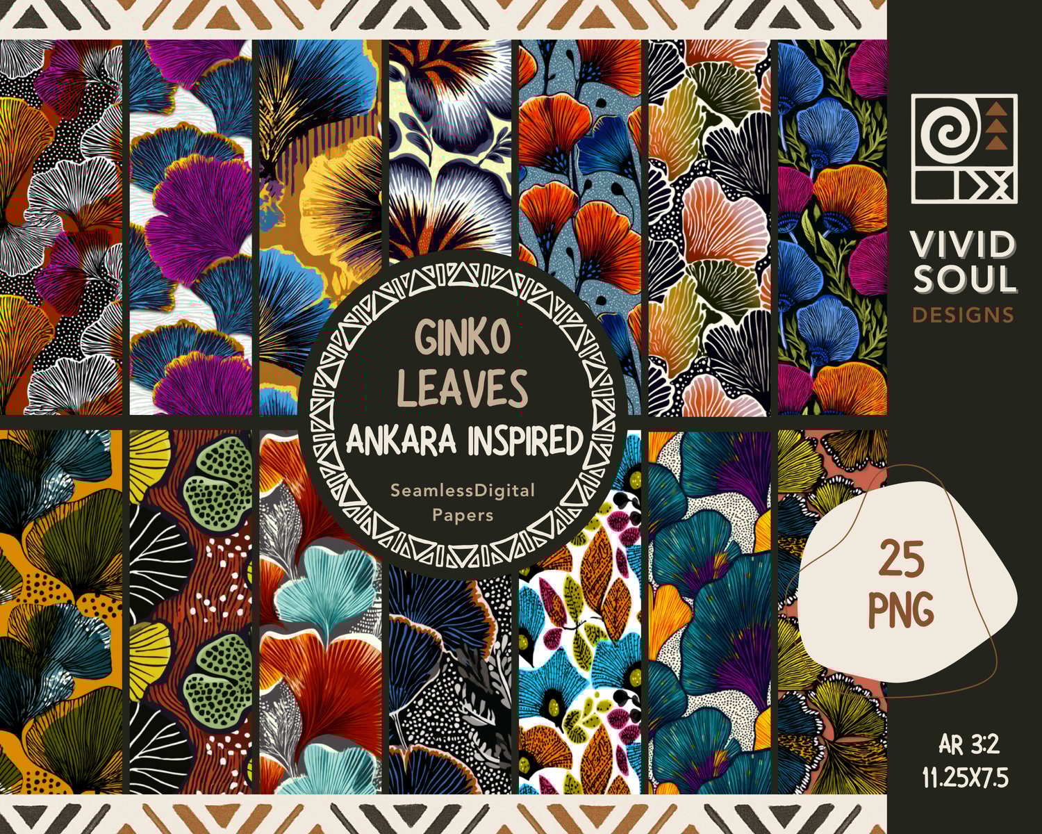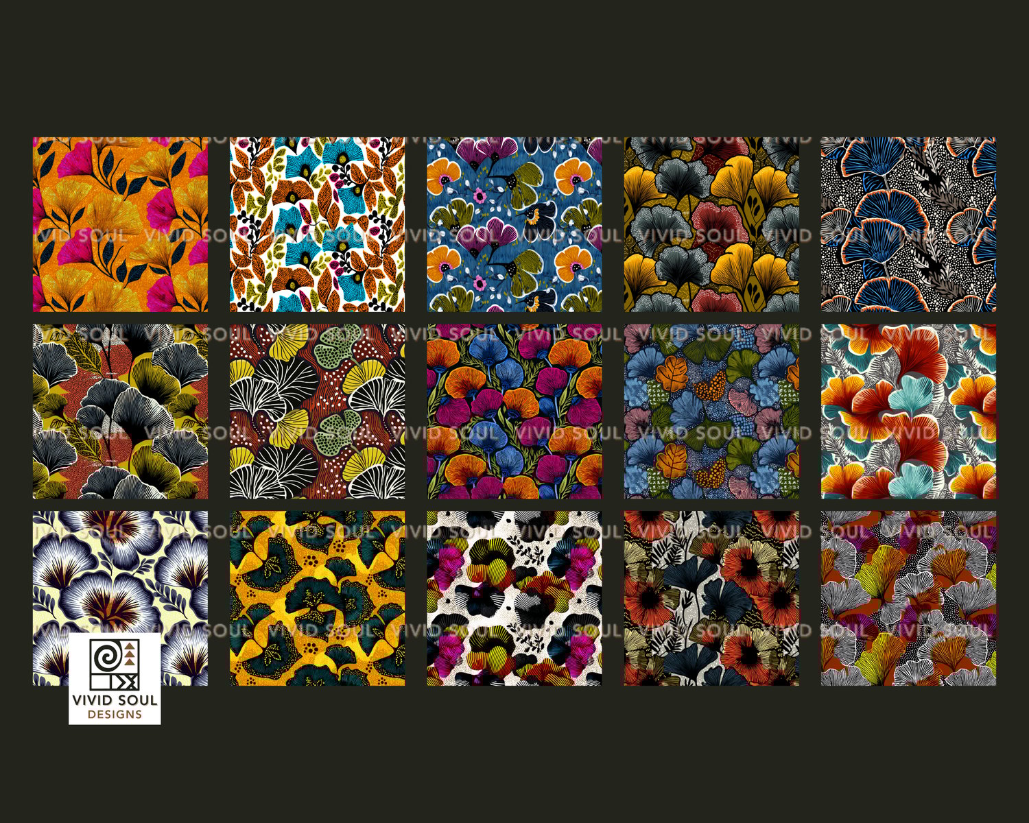 Ginko Leaves Bundle – 25 Seamless Patterns (Ankara Inspired)