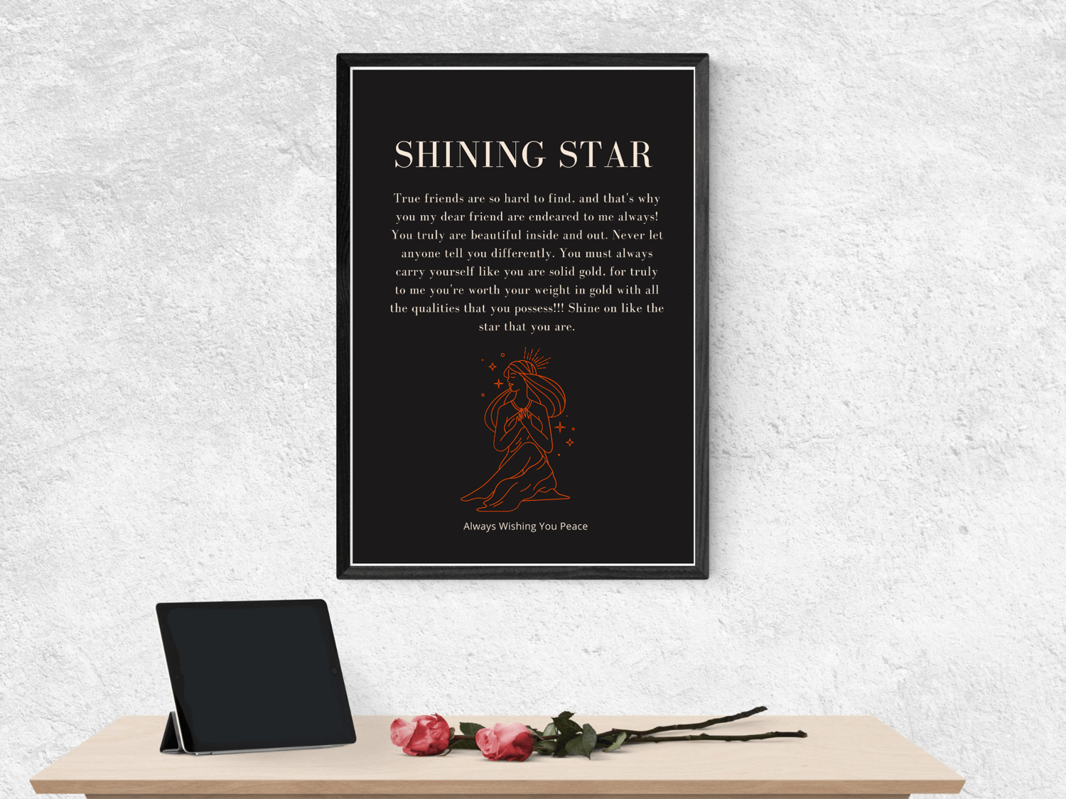 Shining Star Poster, Inspirational Wall Art, Digital Download, Gift, Friendship Gift Wall Décor, Bedroom Wall Décor, Birthday Gift Ideas