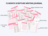 - 12 Scripture themed scripture writing plans (New Beginnings, Identity in Christ, Self-Control, promises of God, Walking in Purpose, Waiting on God, Friendship, Trusting God, Self-care, Overcoming Fear, Gratitude, Contentment)