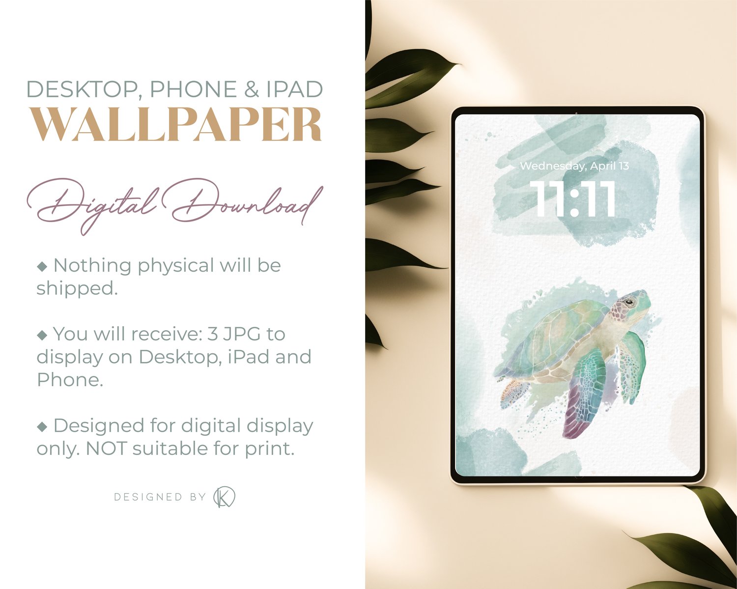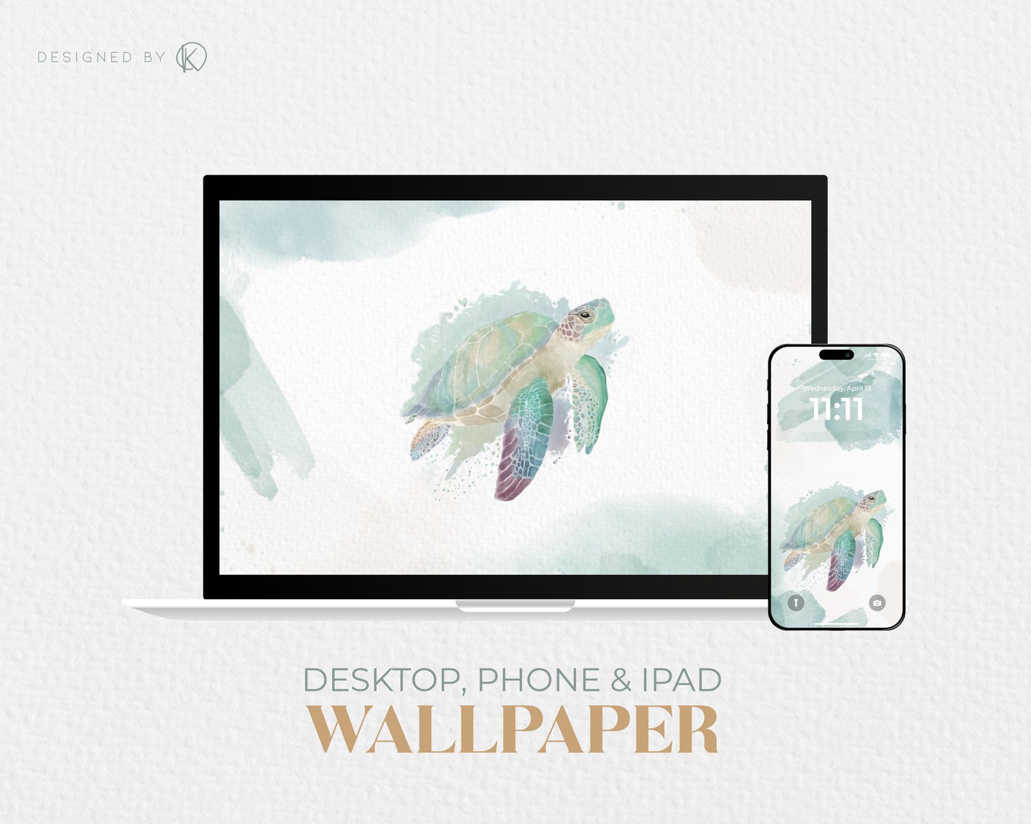 Marine Turtle – Digital Watercolor Wallpaper Set (Phone, iPad & Desktop)