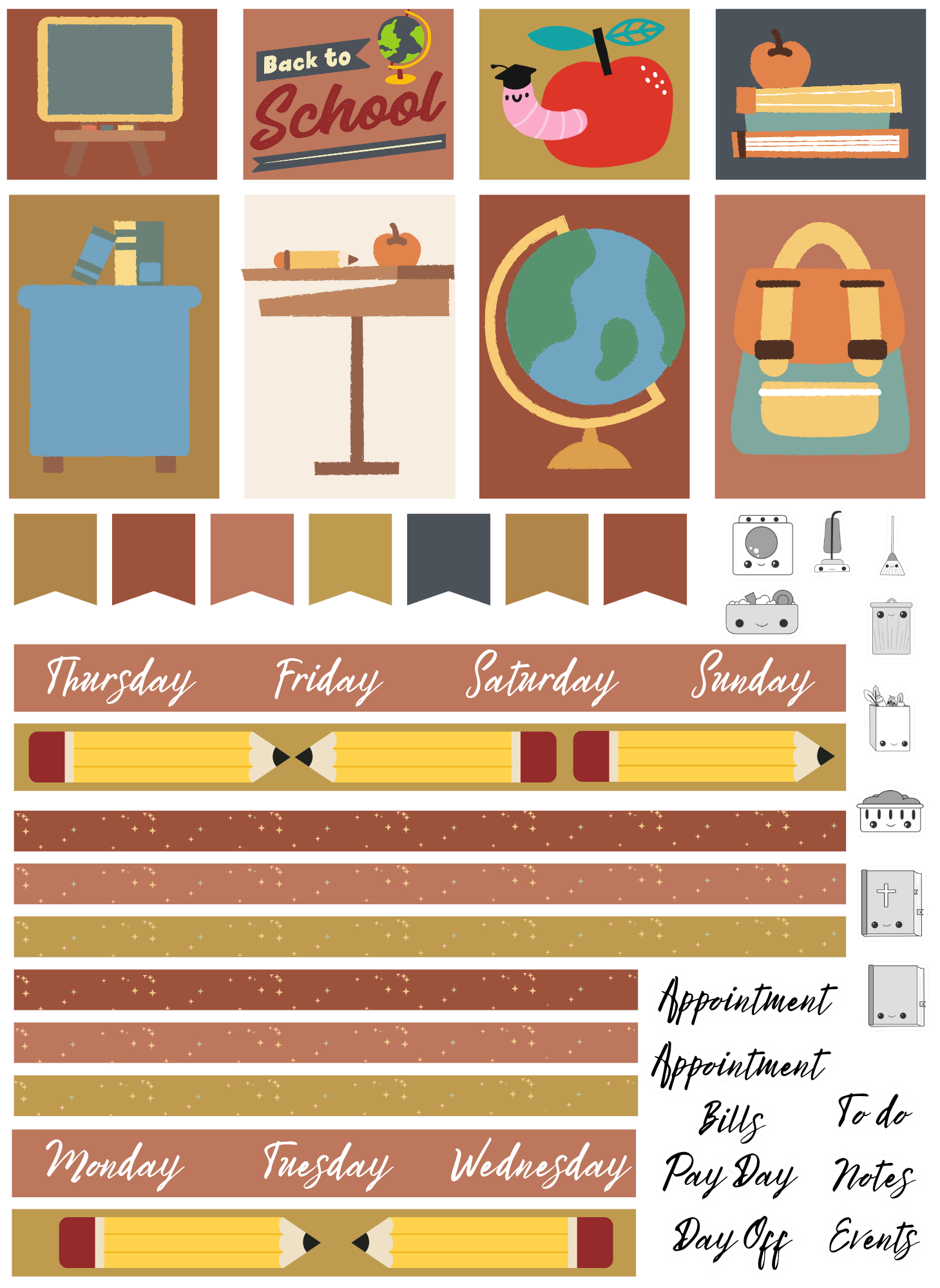 Back-to-School Nostalgia – Retro School Digital Monthly Planner Sticker kit - Happy Planner