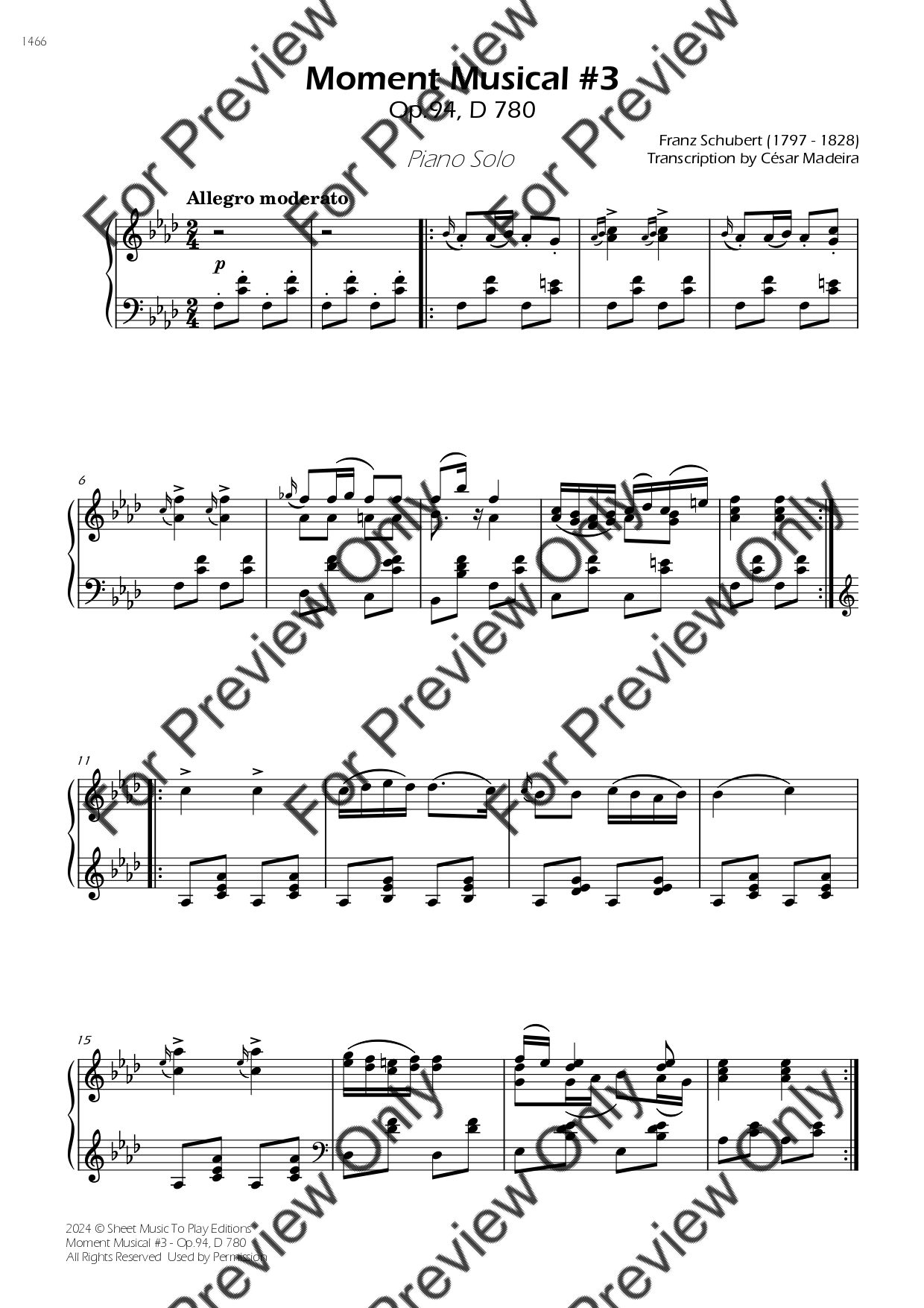 Moment Musical No.3, Op.94 - D.780 by Franz Schubert. Arrangement for Piano Solo. With Full Score. Have fun!