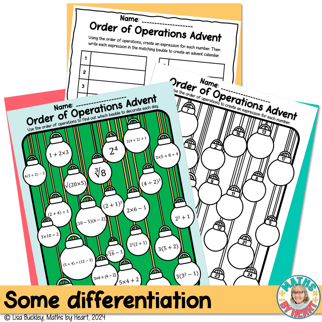 ✅ Order of operations advent calendar (2 Versions): 2 versions cater to different learning styles - students solve expressions to find the date (answer key included) or create expressions based on given dates.