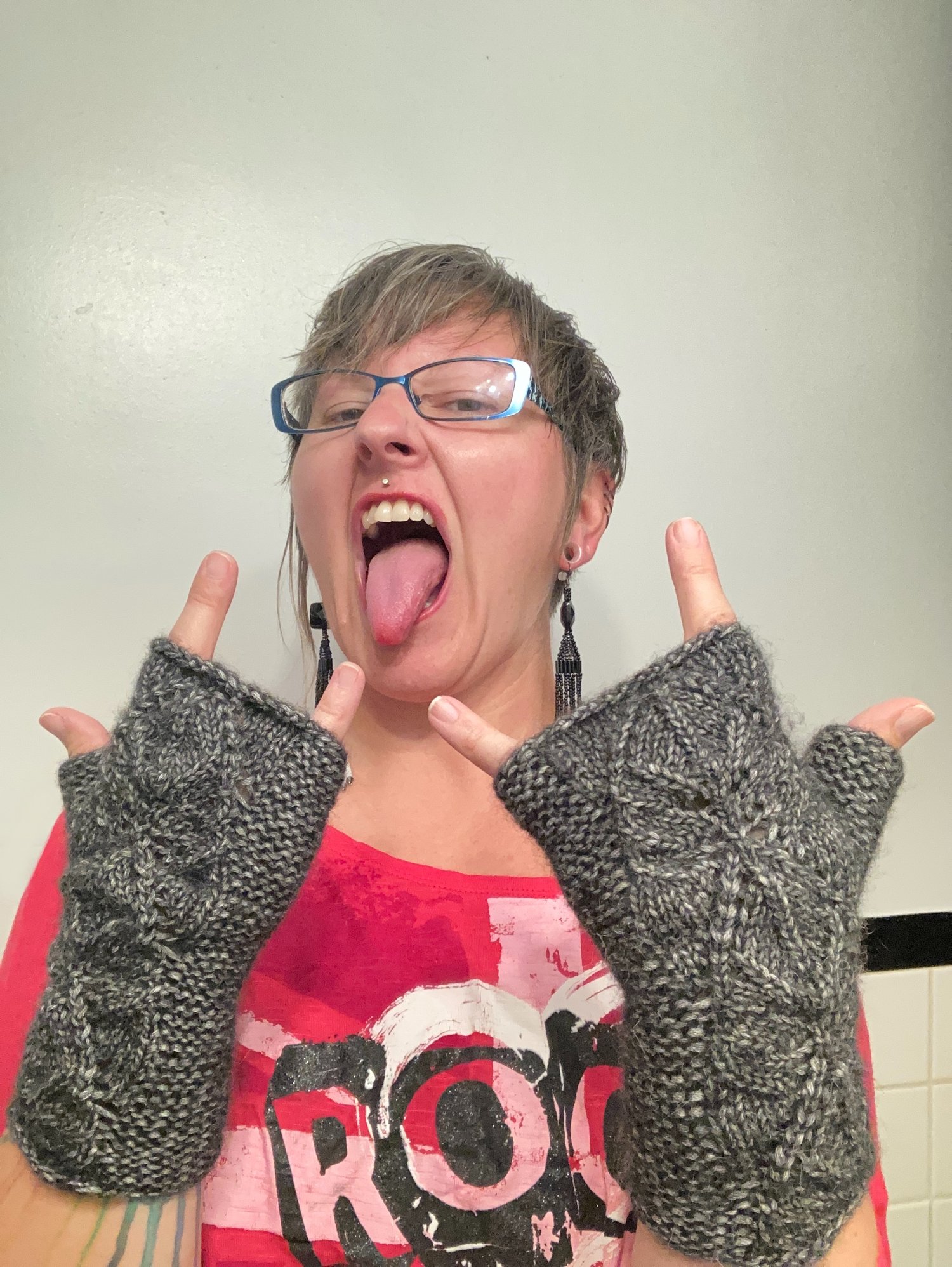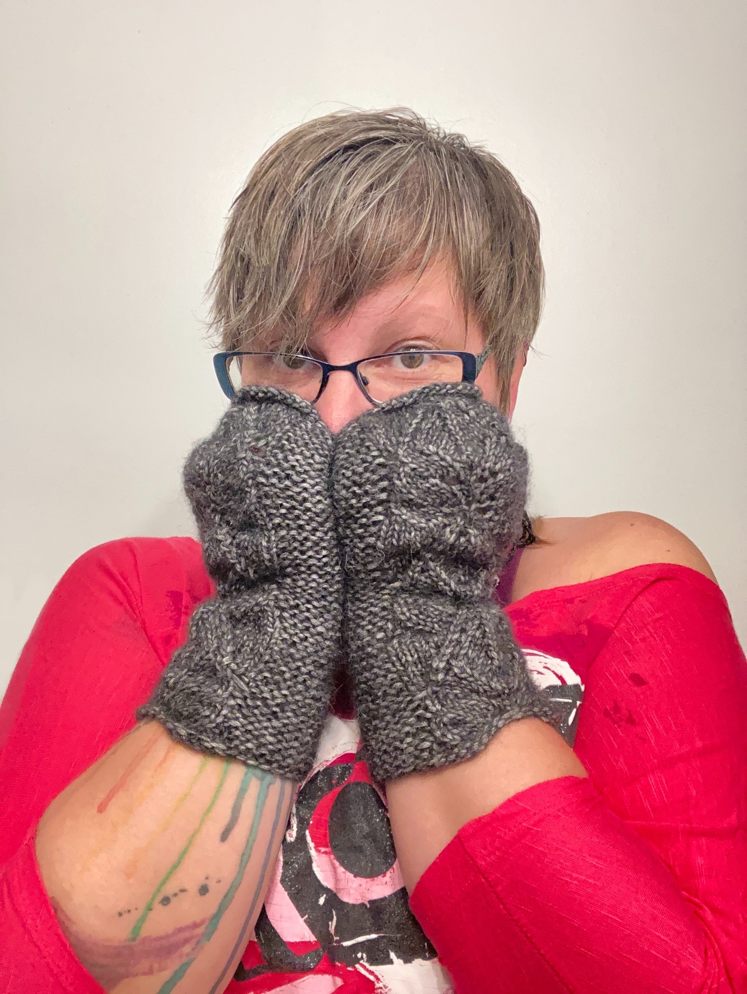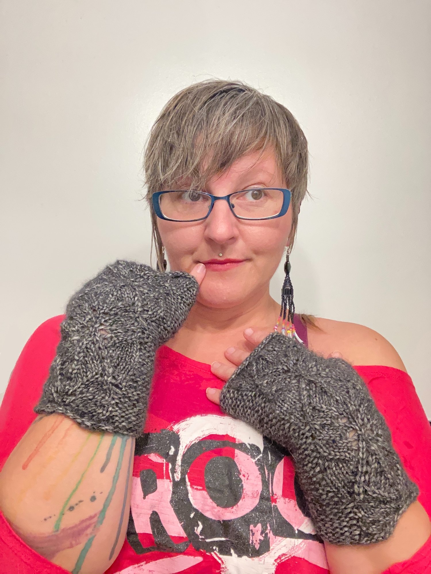 Velvet Grip is the second pattern in my Garters and Lace collection, each pattern named after early 20th century garter manufacturers. These mitts knit up quick and easy, and are equally elegant and gothy badass!