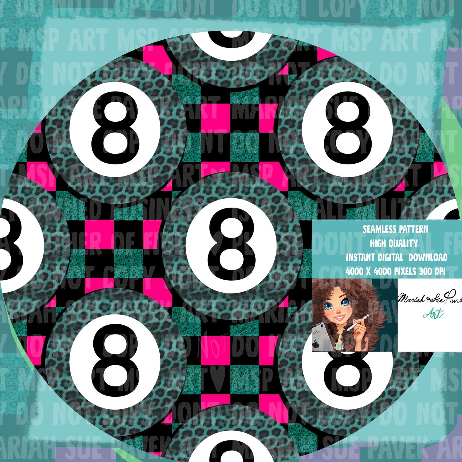 Neon Animal Print checkered 8 ball seamless