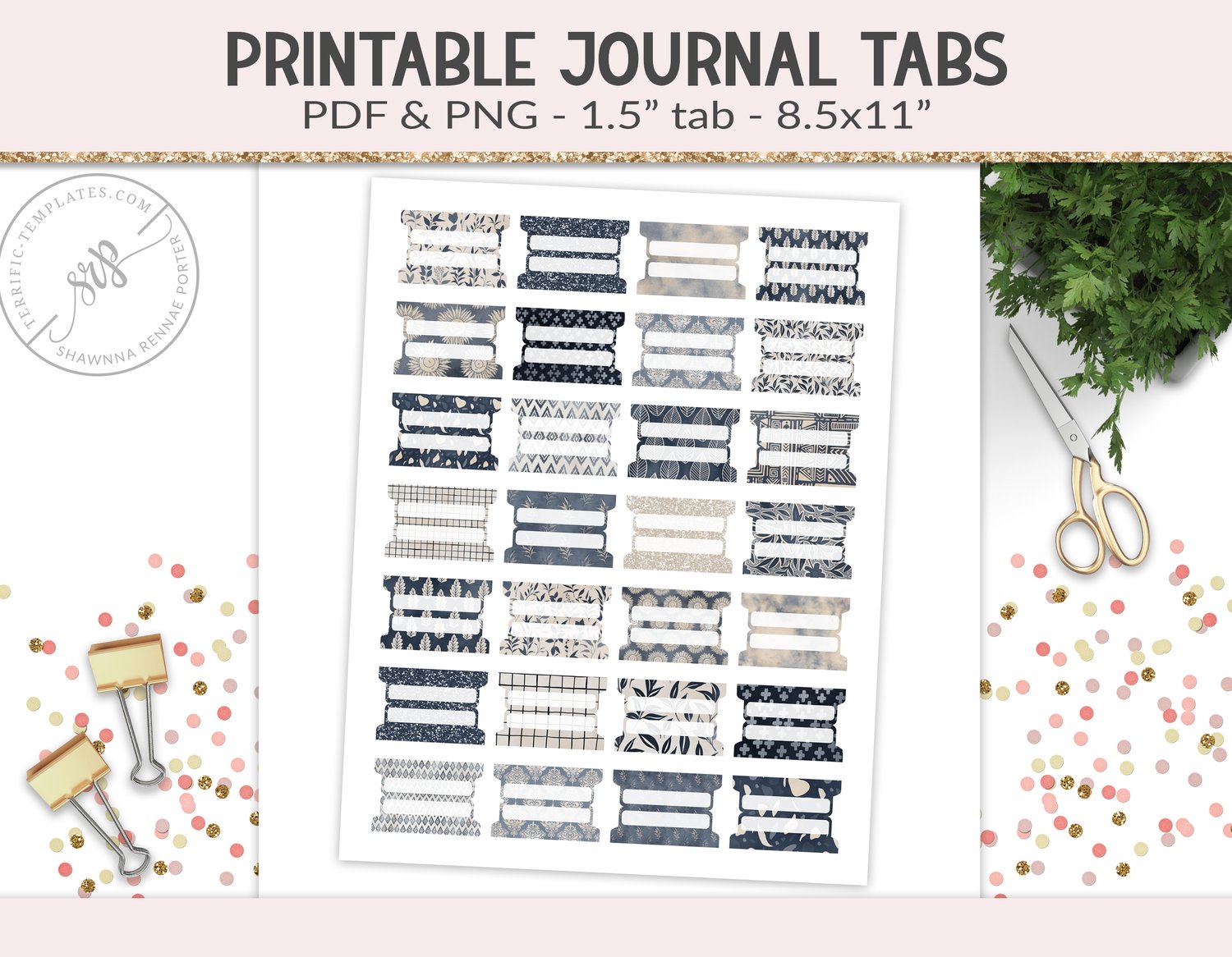 Printable fold over page tabs, PDF & PNG (PR32)