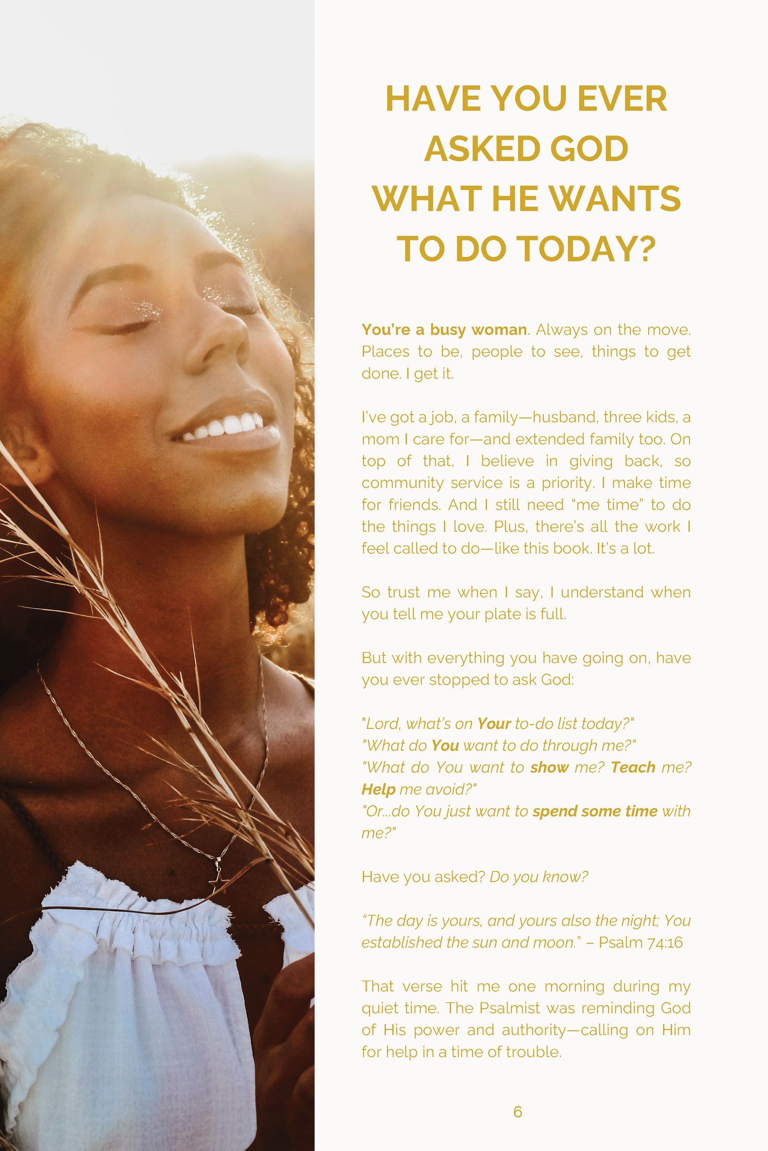 You don’t have to navigate life on your own. In a world full of noise and distraction, The Day is Yours: 31 Days of Pursuing God’s Will in the Psalms offers a quiet place to connect with God and hear His heart for you.