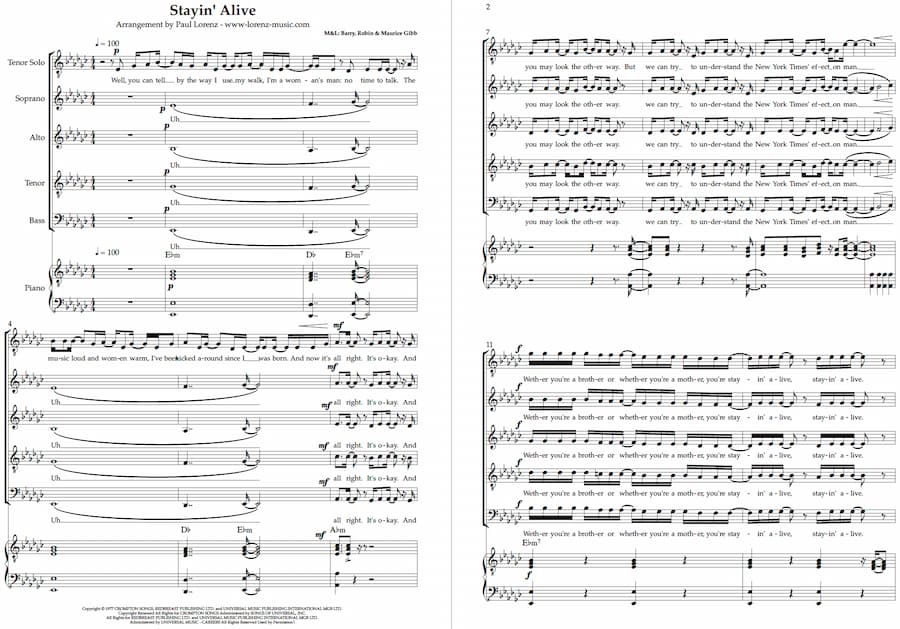 Bee Gees - Stayin' Alive Gospel Choir Sheet Music PDF Download