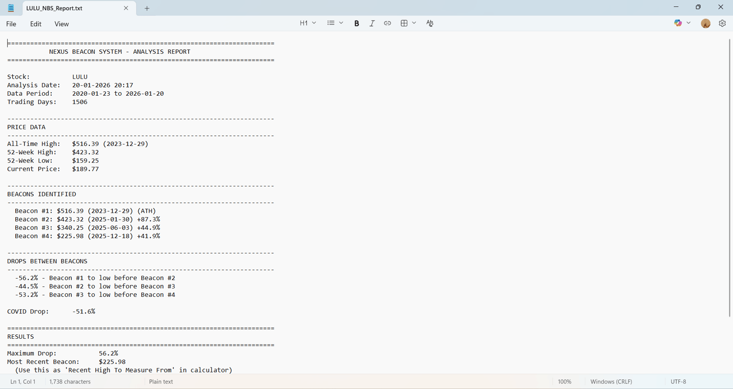 Nexus Beacon System — Stock Entry Point Analysis Tool