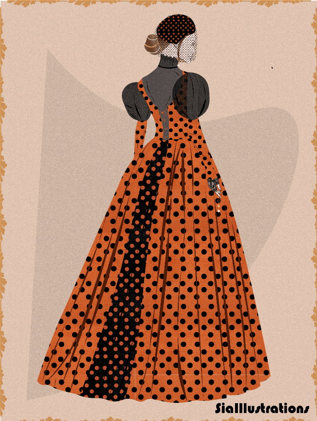 Orange Polka Dots Gown Fashion Print Illustration