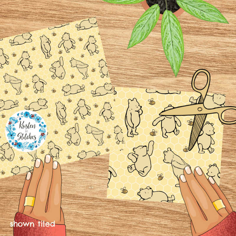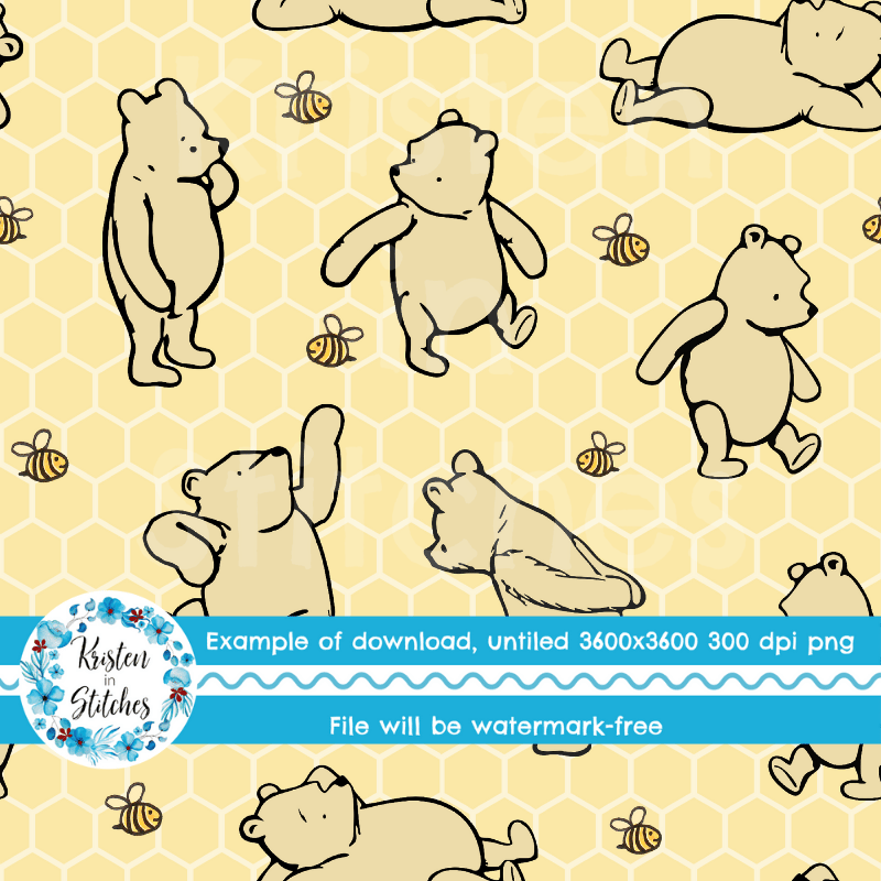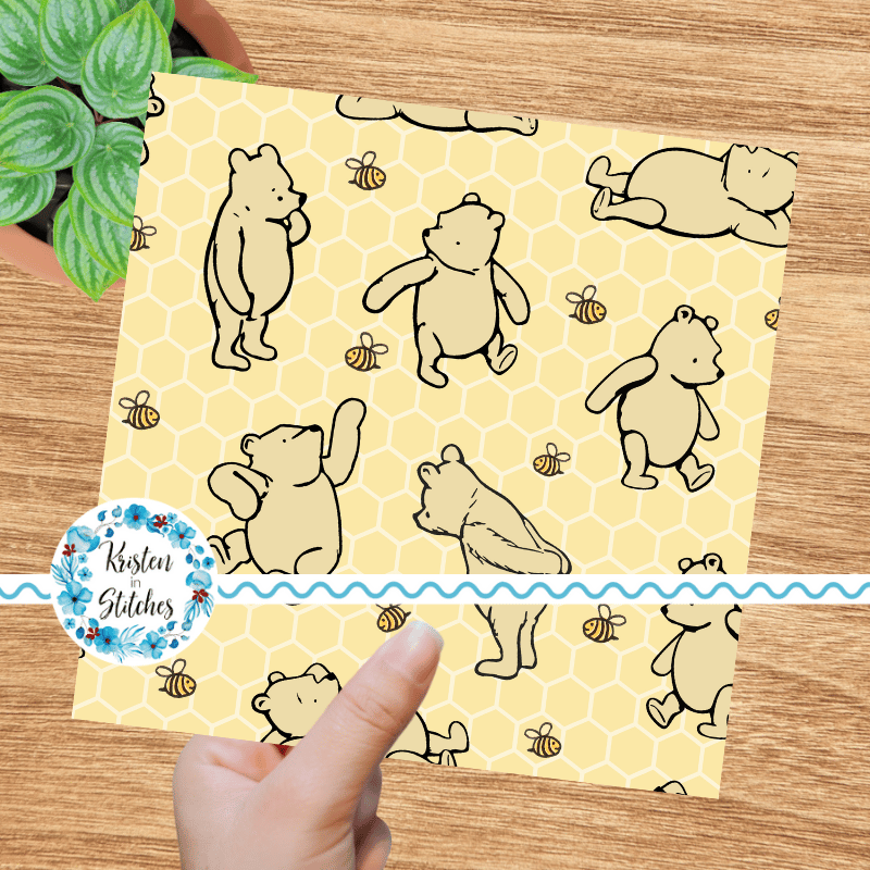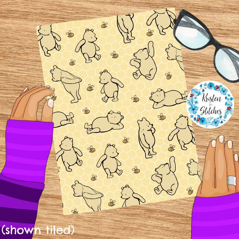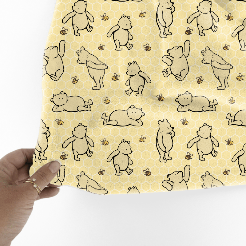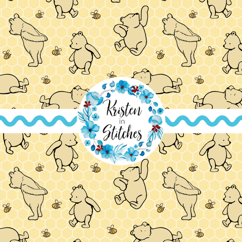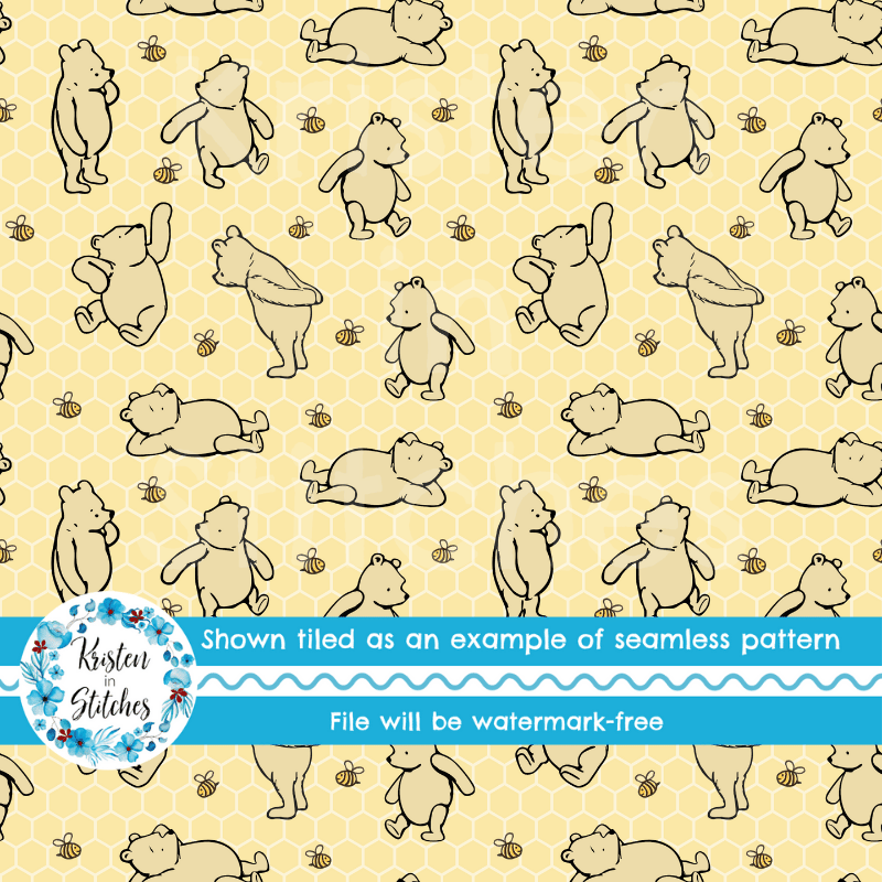 Classic Winnie the Pooh and Bees Nursery Seamless Pattern, Pale Yellow Honeycomb