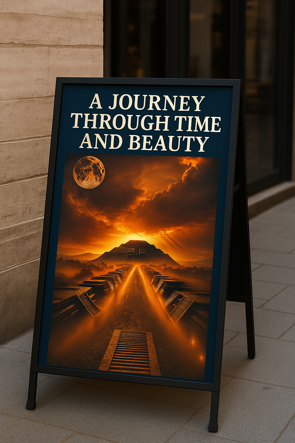 As the sun sets, the Pyramid of the Sun casts its long shadow over the Avenue of the Dead, while storm-lit clouds glow in fiery crimson and gold. Mist coils through the valley like memory itself. Every step along the ancient road carries the reverberation of rituals, astronomy, architecture — and mystery.