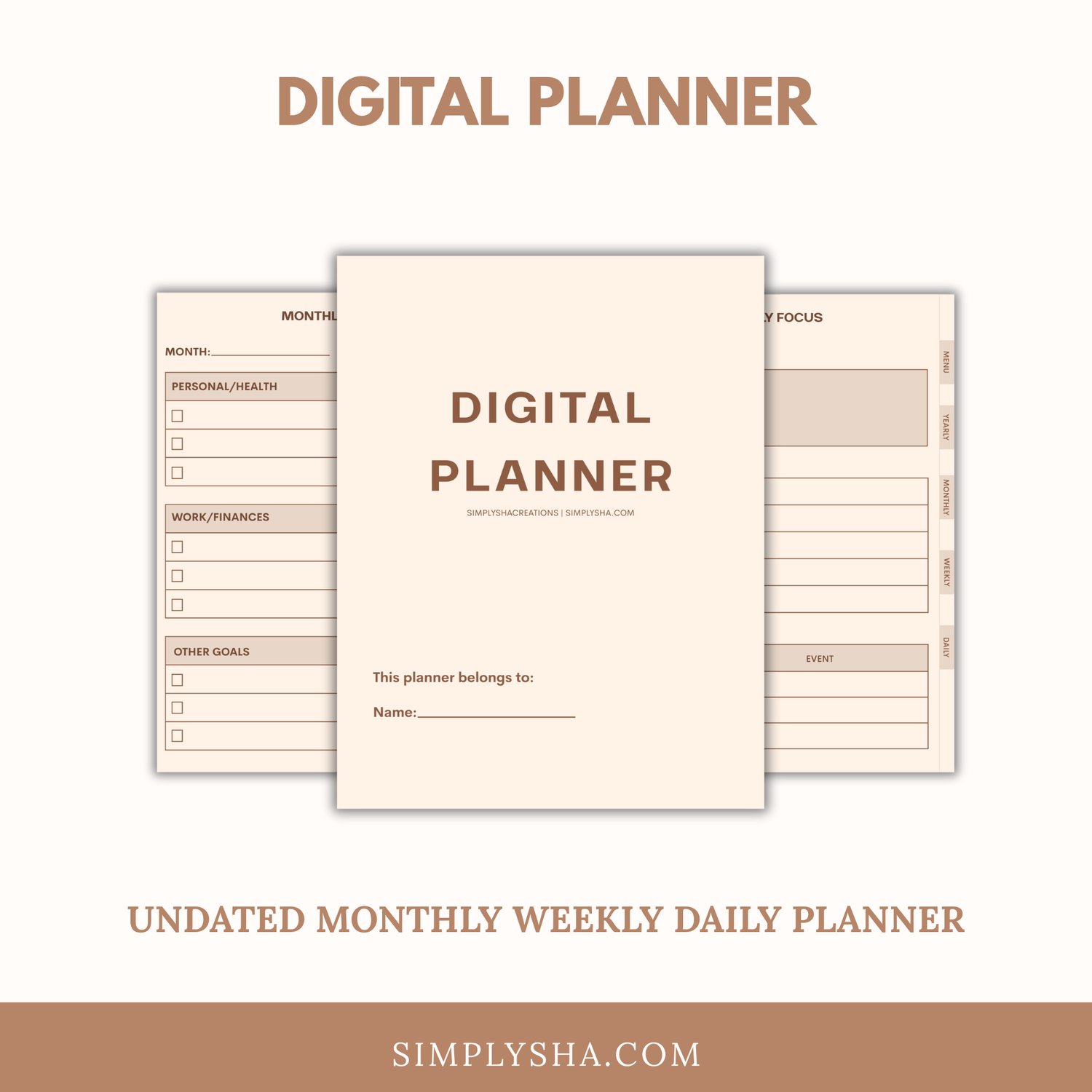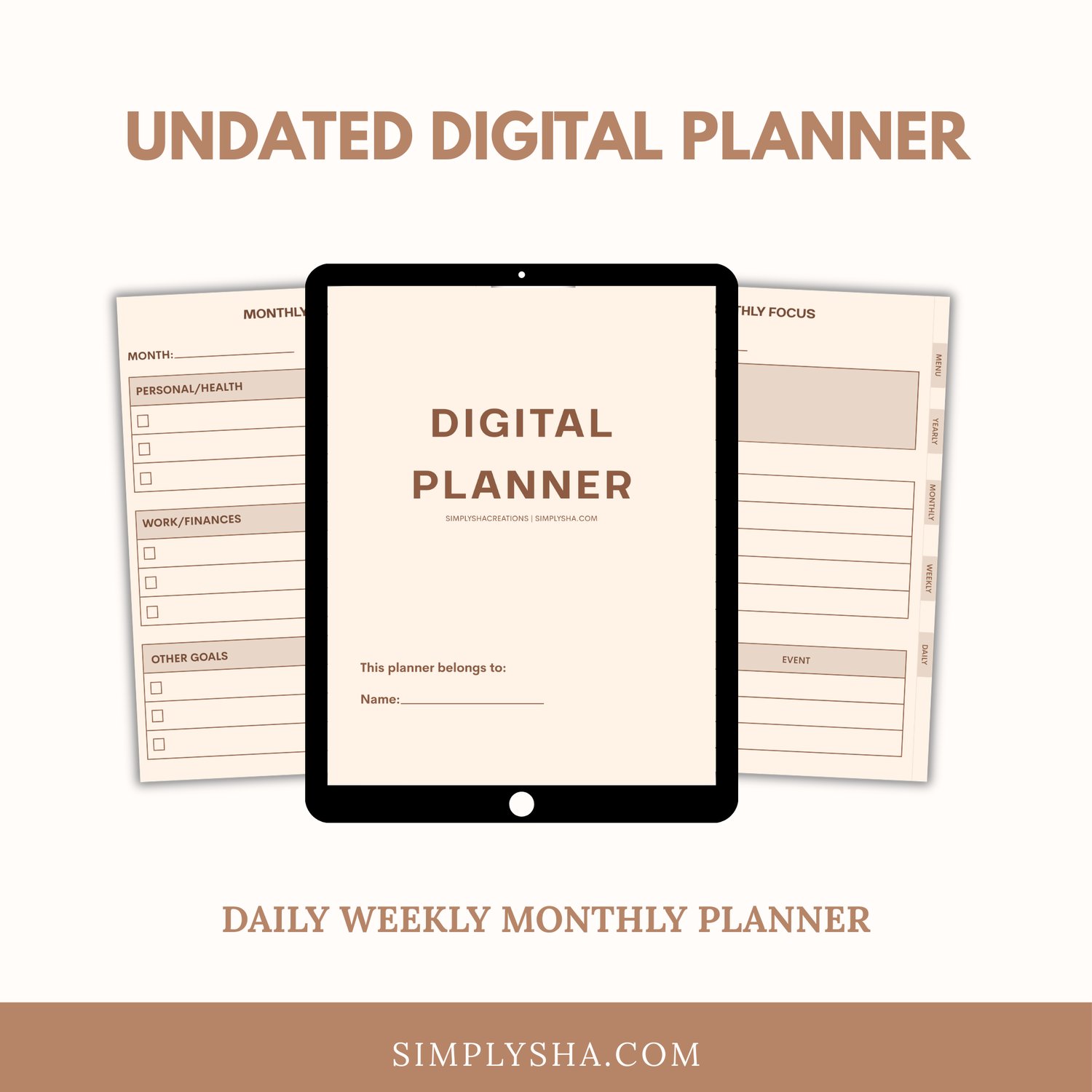Undated Digital Planner for iPad & GoodNotes | Daily Weekly Monthly Planner