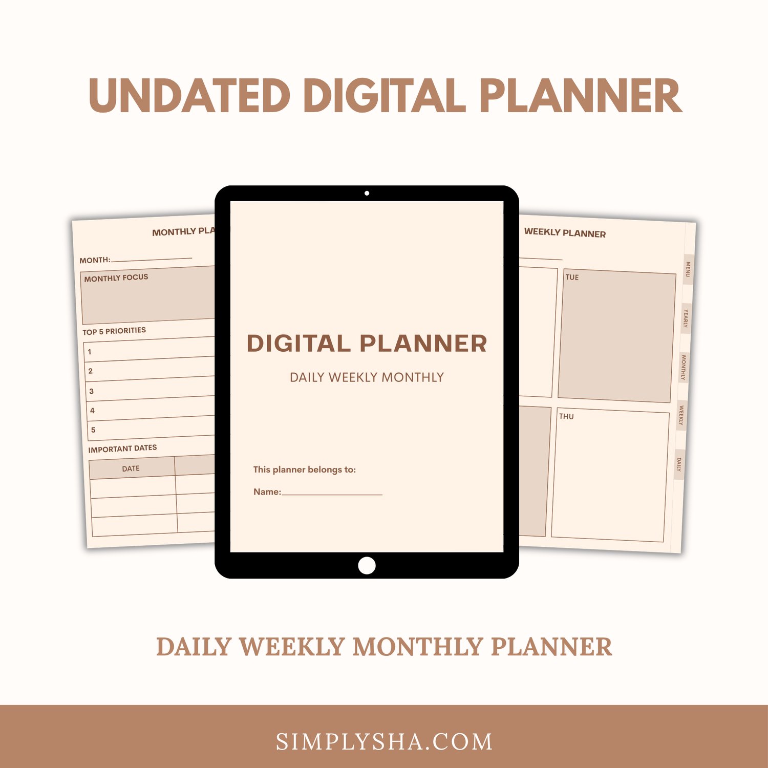 Undated Digital Planner for iPad & GoodNotes | Minimalist Daily Weekly Monthly Planner
