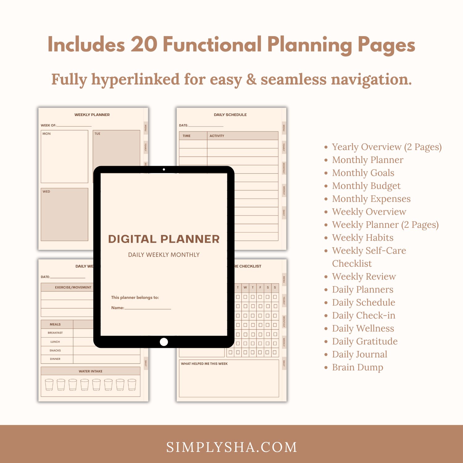 This undated Digital Planner is designed for digital use on iPad and tablets. It is fully hyperlinked for easy and seamless navigation, making it perfect for GoodNotes, Notability, Noteshelf, Xodo, and other PDF annotation apps.