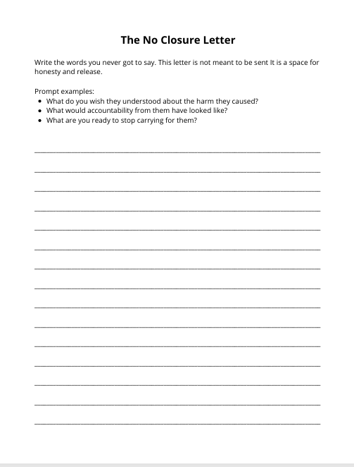 • A guided “No-Closure Letter” exercise to help you express what was never said