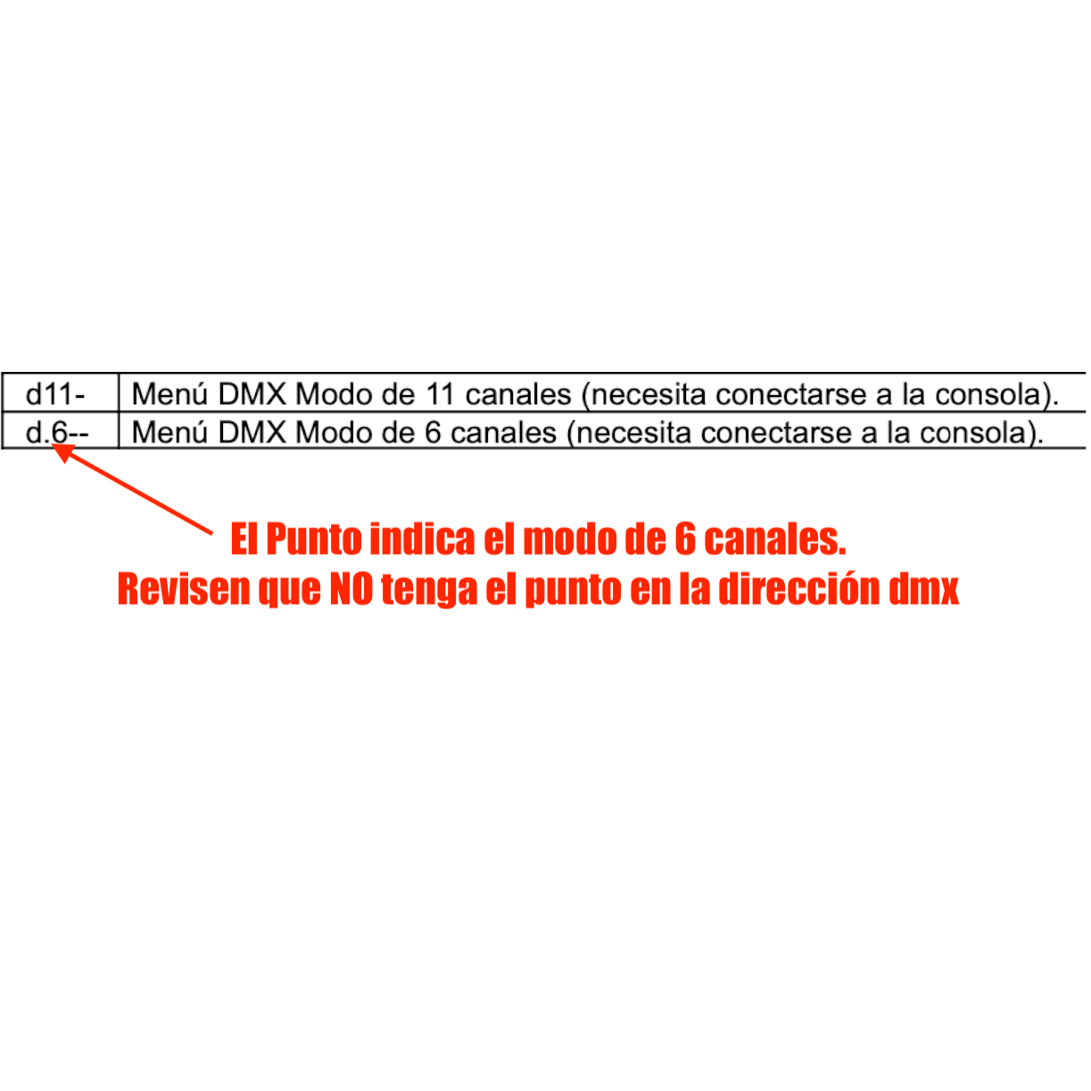 * Verifique que coincidan estos canales: 1 Dimmer, 5 Blanco, 6 Strobo.