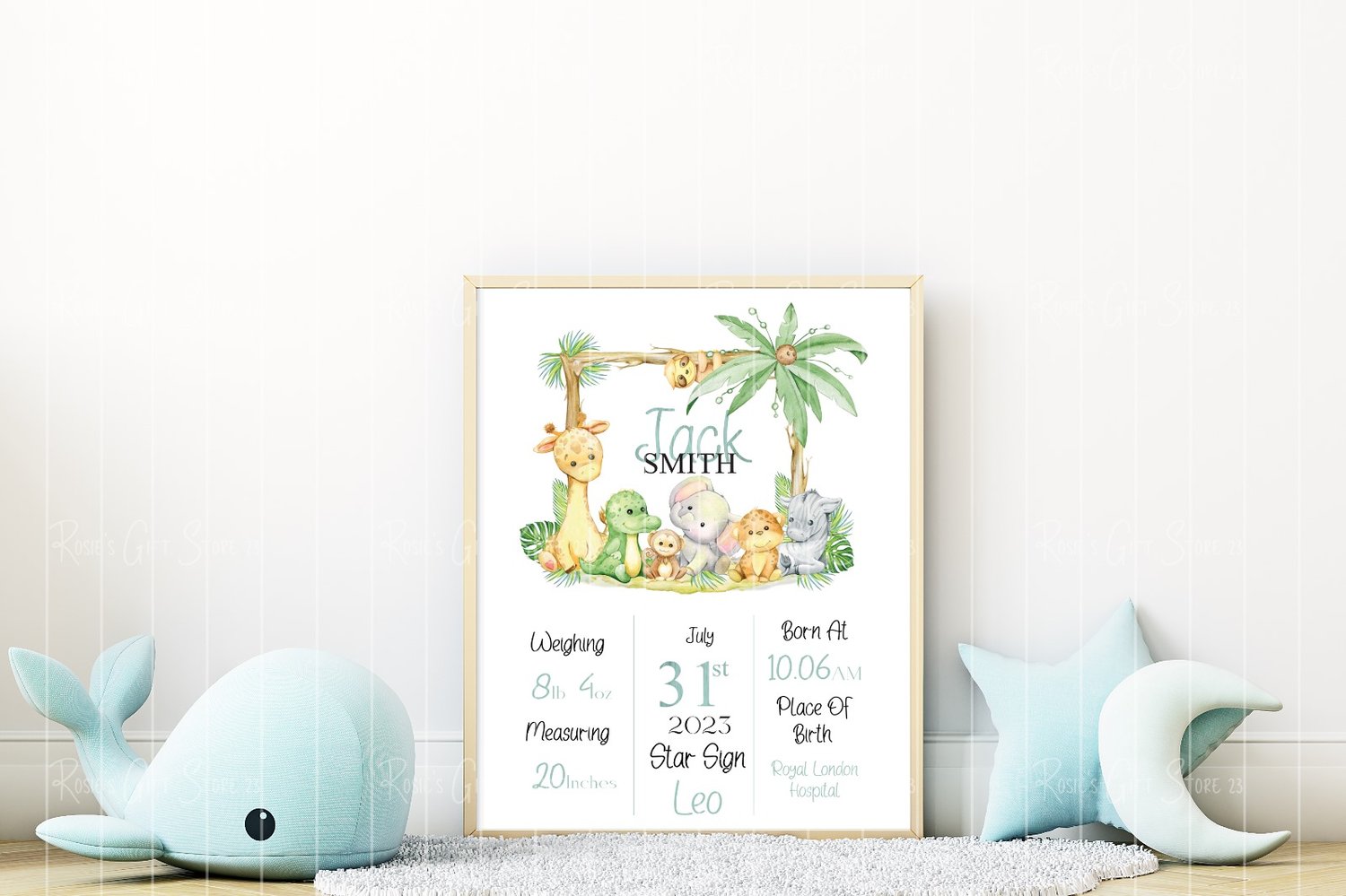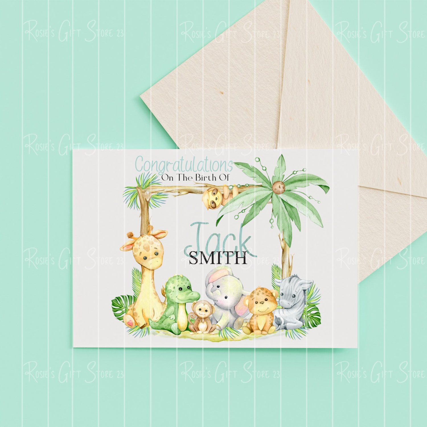 Personalised Safari Print Birth Details Baby Keepsake Matching Card