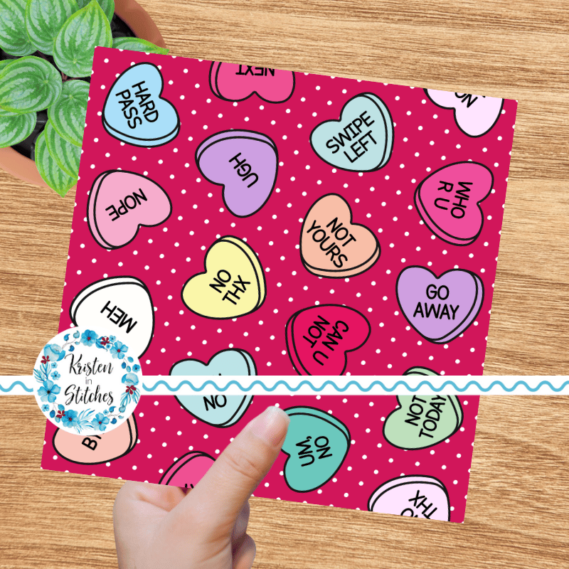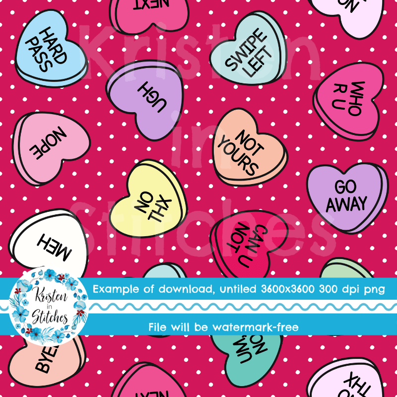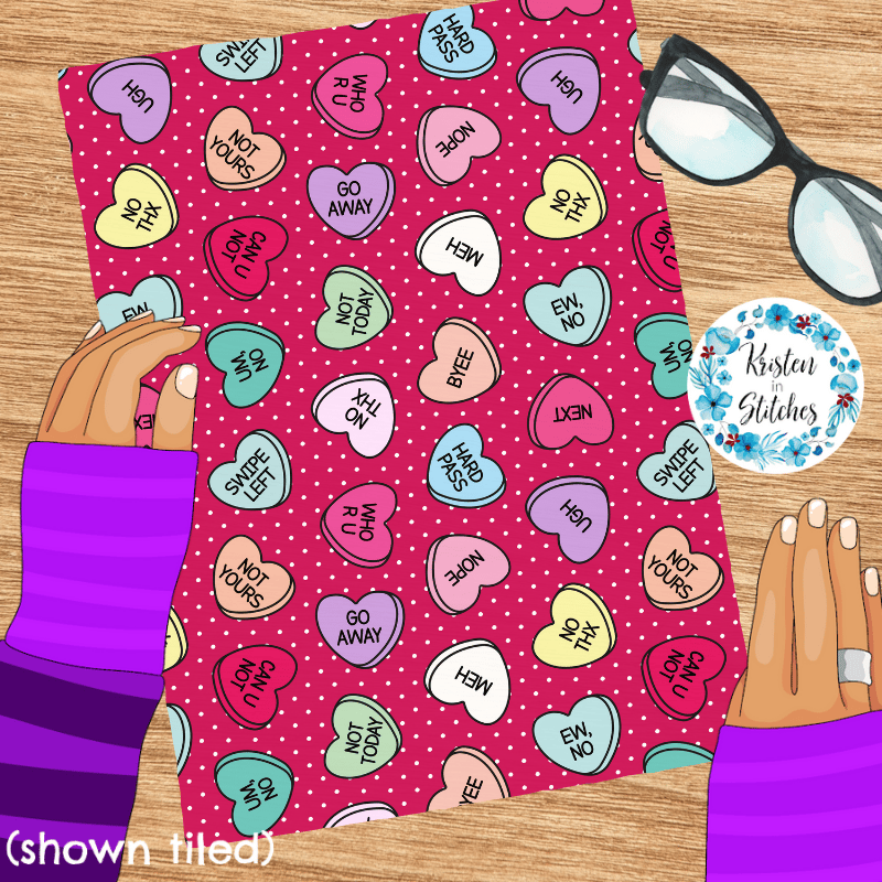 Sassy Anti-Valentine Seamless Pattern, Conversation Heart Candy