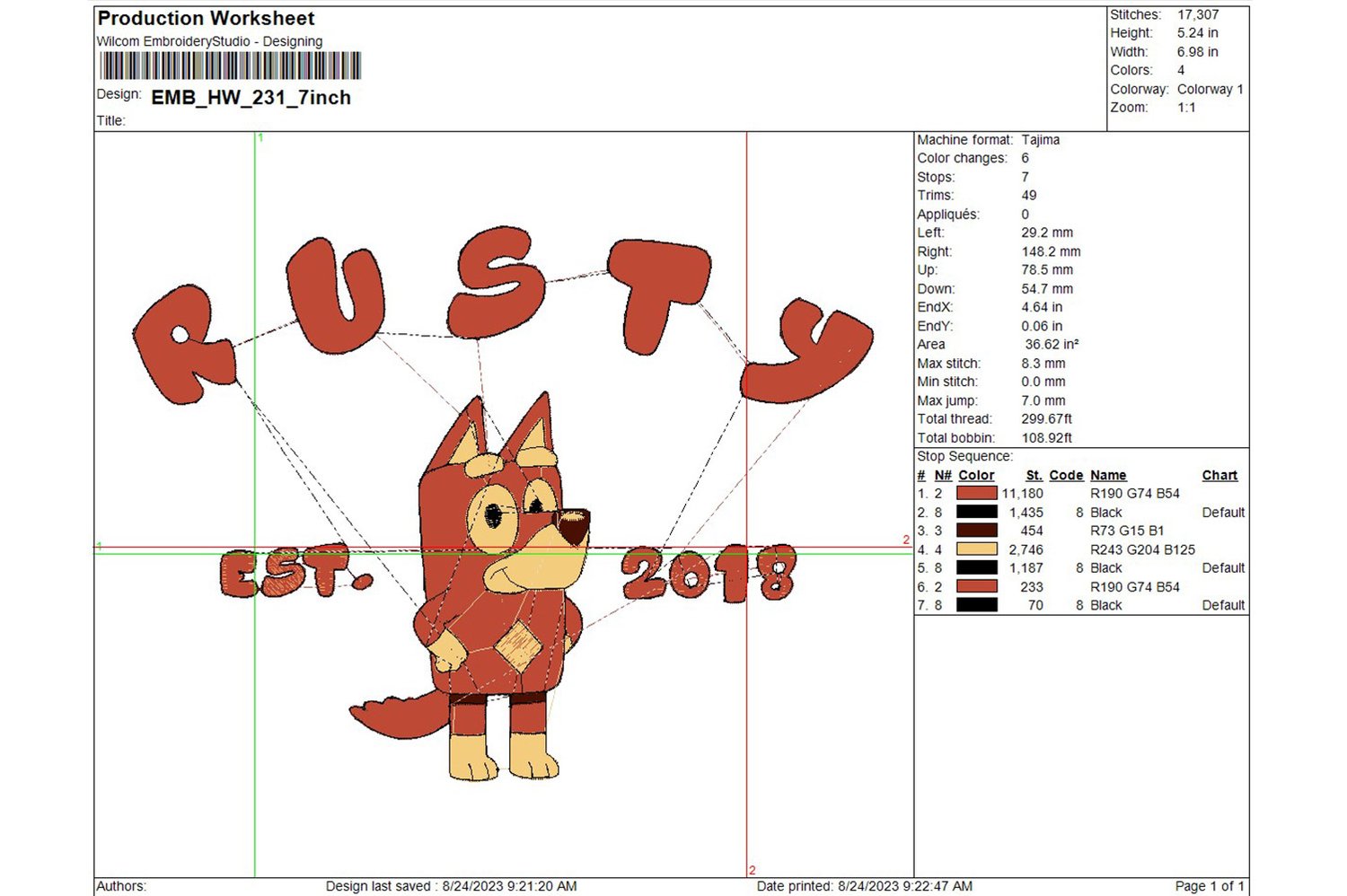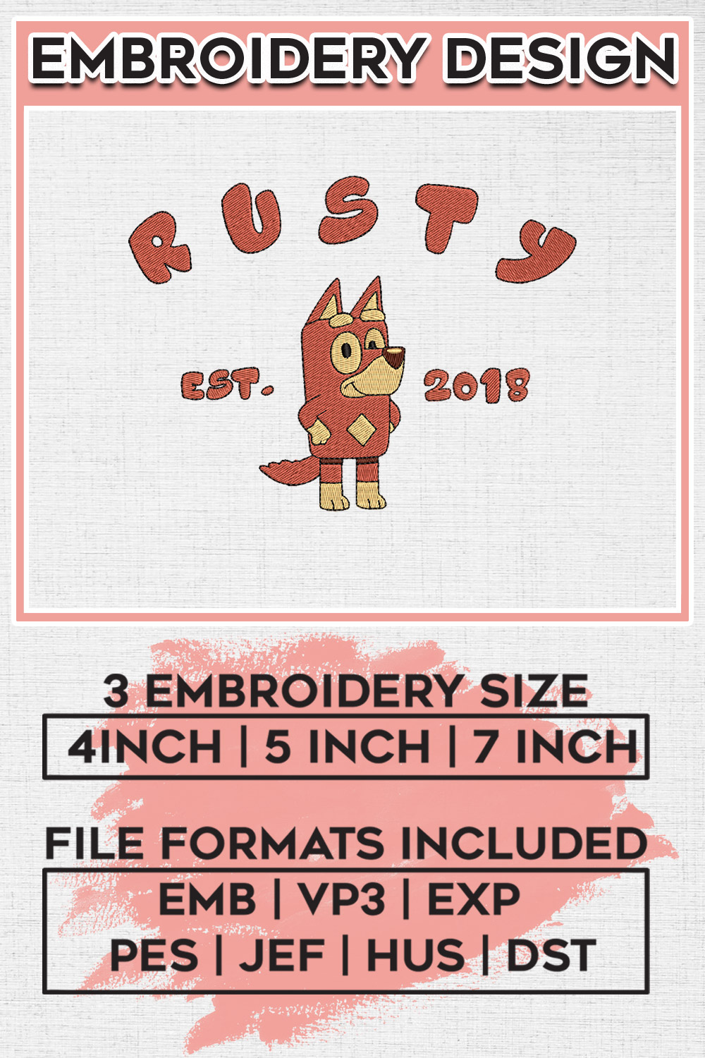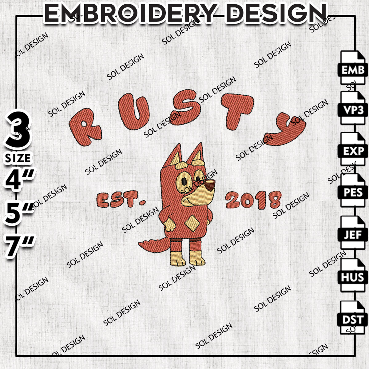 Rusty Bluey Squad Est Embroidery Designs, Bluey Family Machine Embroidery Files, Cartoon Character embroidery designs, Bluey Disney, Digital Download