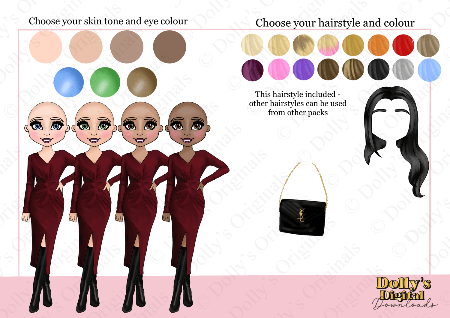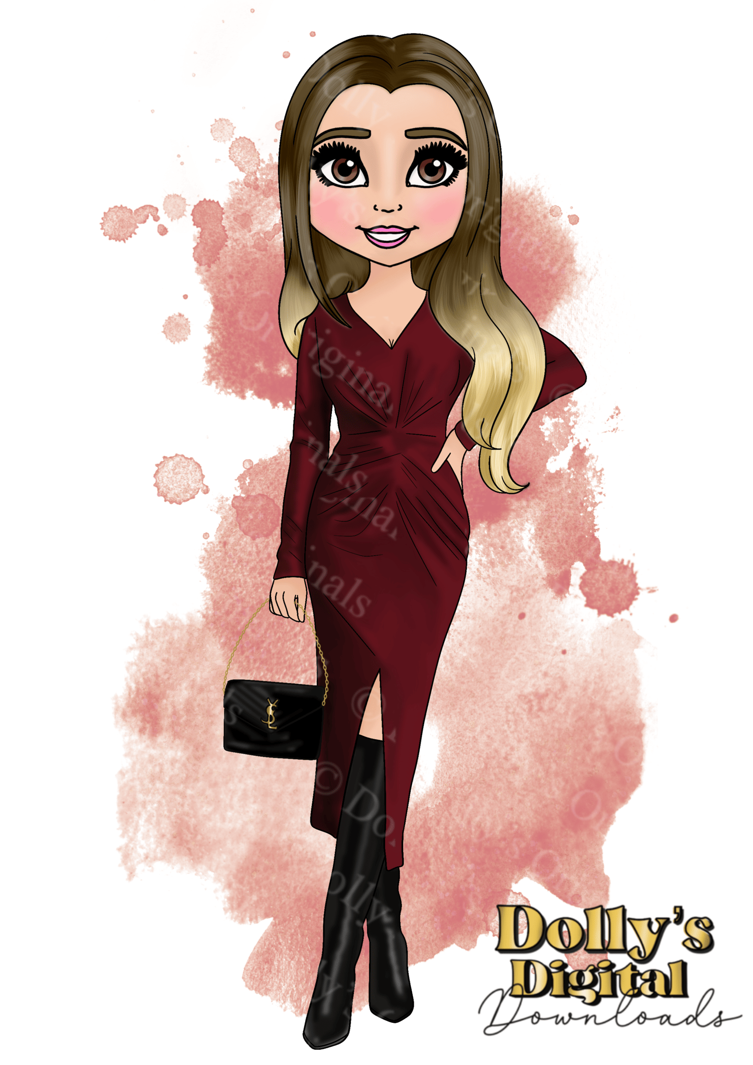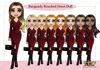 Instant digital download of our Burgundy Rouched Dress Doll Character Bundle PNG (33 PNG’s)