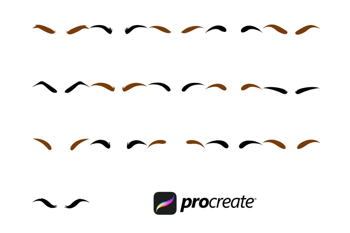 Pack of 16 Facial Eyebrow Procreate Stamp Brushes! These eyebrow stamps are perfect for making illustration projects or any procreate purpose. You can use these in any colour or opacity and they can be resized to best fit your art. You need Procreate 5.0.8 or 5X, an iPad, and an Apple Pencil. Also, these stamp brushes are not pressure sensitive and can be used with third party stylus, Apple Pencil or even your finger. You can change the colour, size and opacity of these stamps.