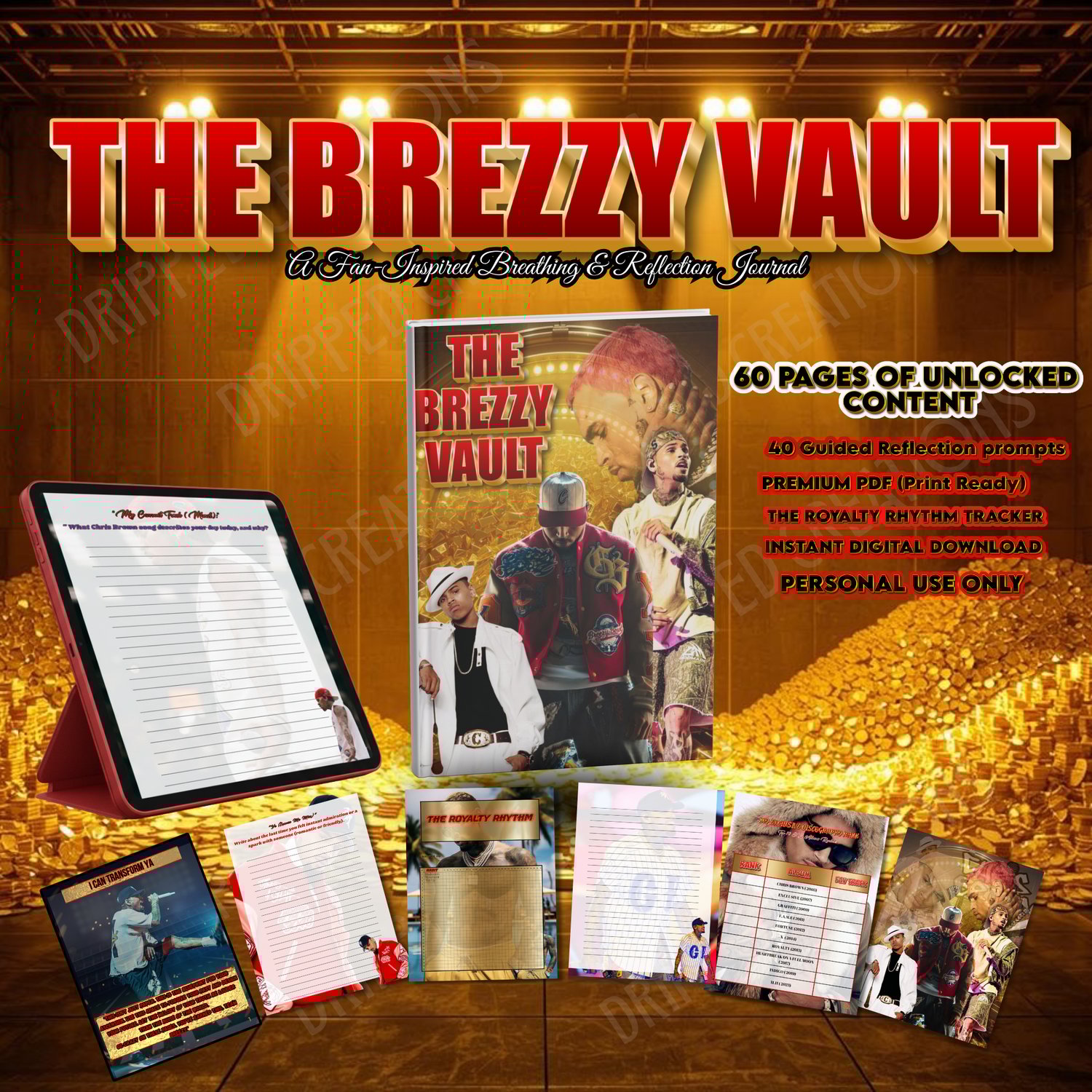 The Brezzy Vault Journal is a 60-page fan-made digital breathing and reflection journal created as a personal space to slow down, breathe with intention, and release emotions through writing. This journal is designed for fans who connect deeply with music, mood, and mindful reflection.