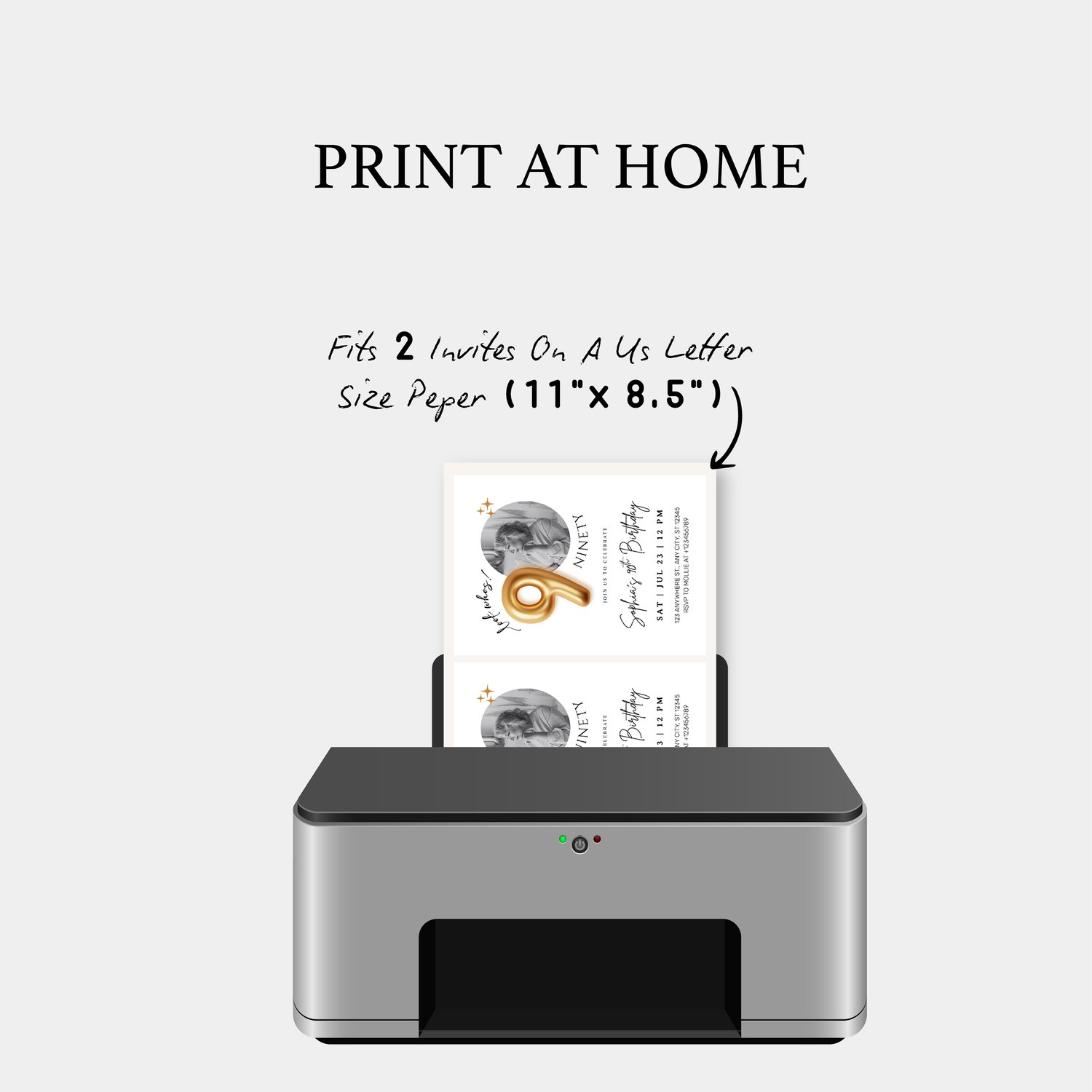 Make it personal by adding your favorite photo to create a unique and unforgettable 90th birthday invitation.