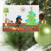 This is an adorable Christmas Holiday card that features a fancy Dachshund enjoying his presents!