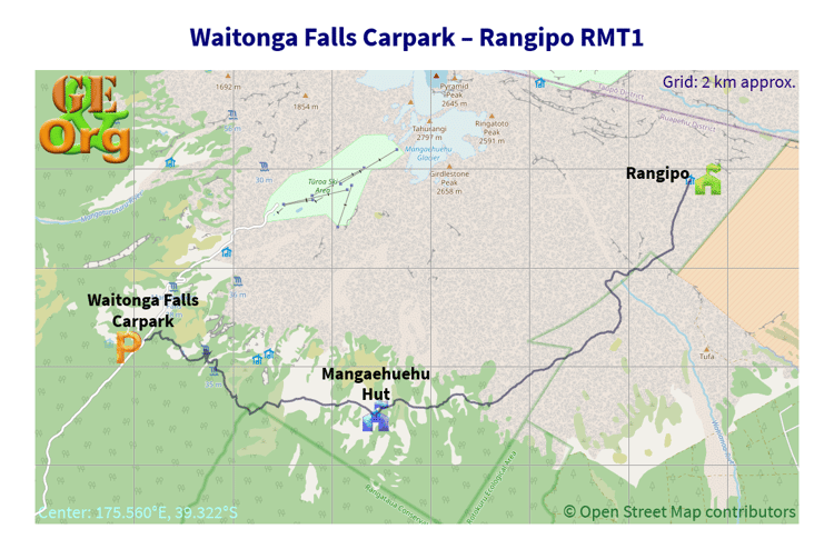 GPX track, KML tour for viewing in GoogleEarth, and OpenStreetMap of the first day of the Whanganui River Journey.