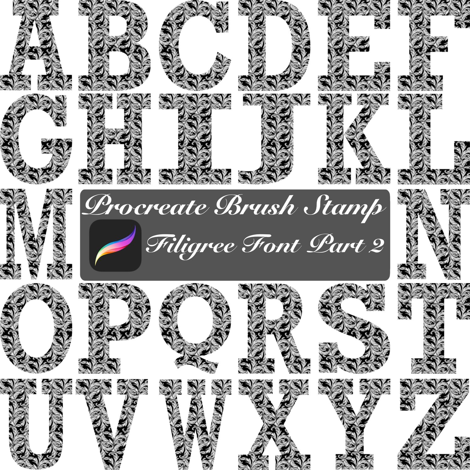 A-Z Filigree Font Style 2 Procreate Brush Stamp