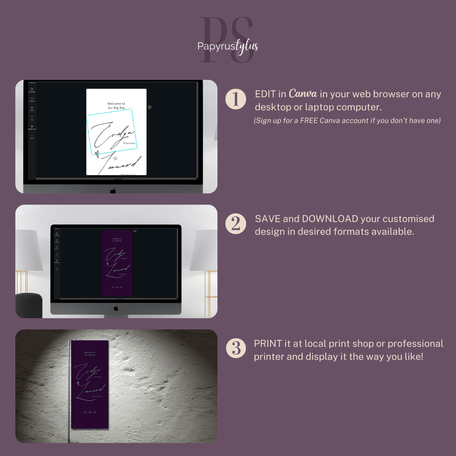 EVELYN Contemporary Wedding Welcome Sign, Roll-up/ Pull-up Banner Template