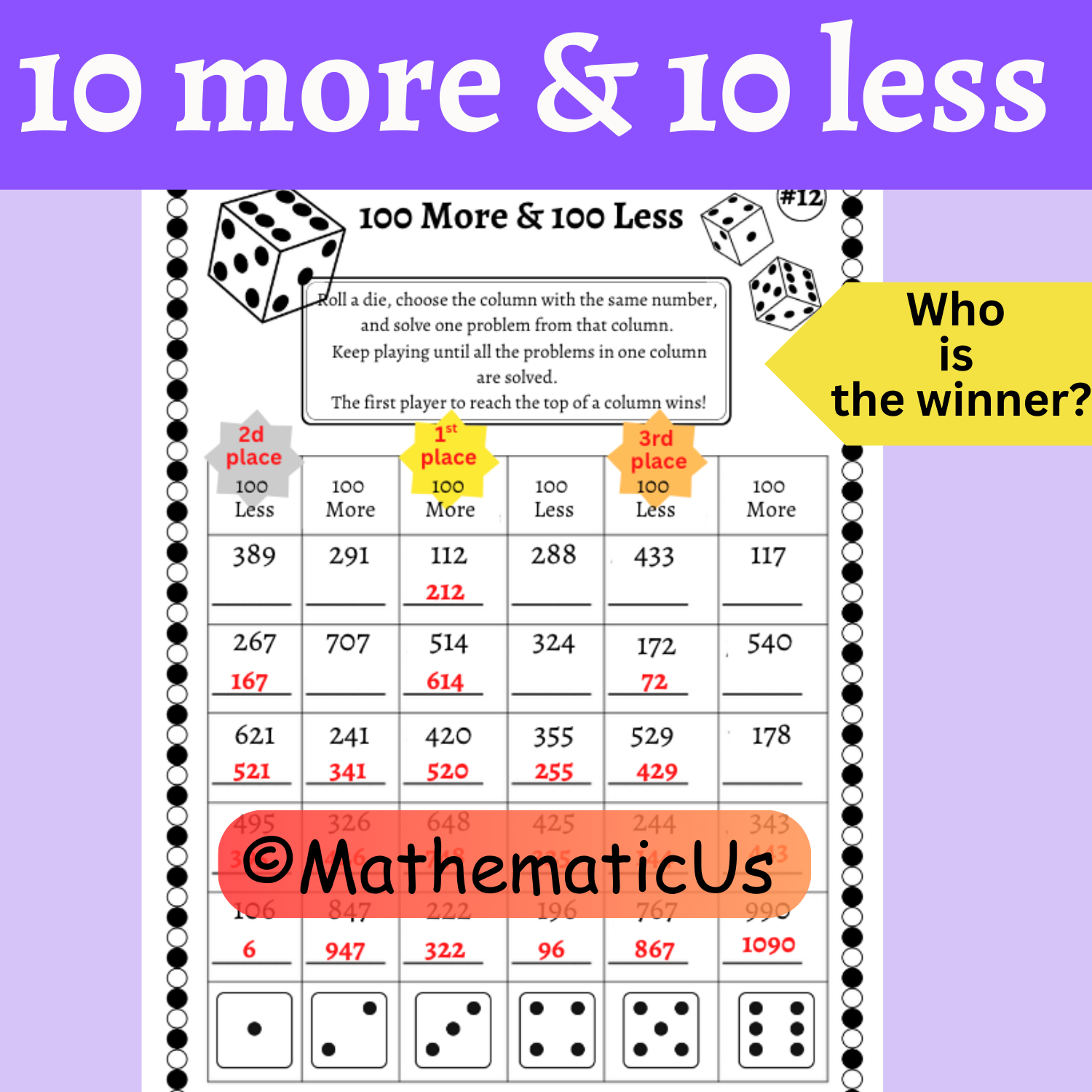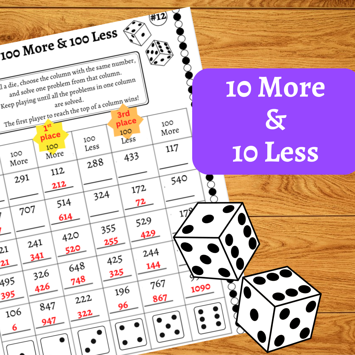 10 & 100 more or less. Up 10, Down 100 Dice Games