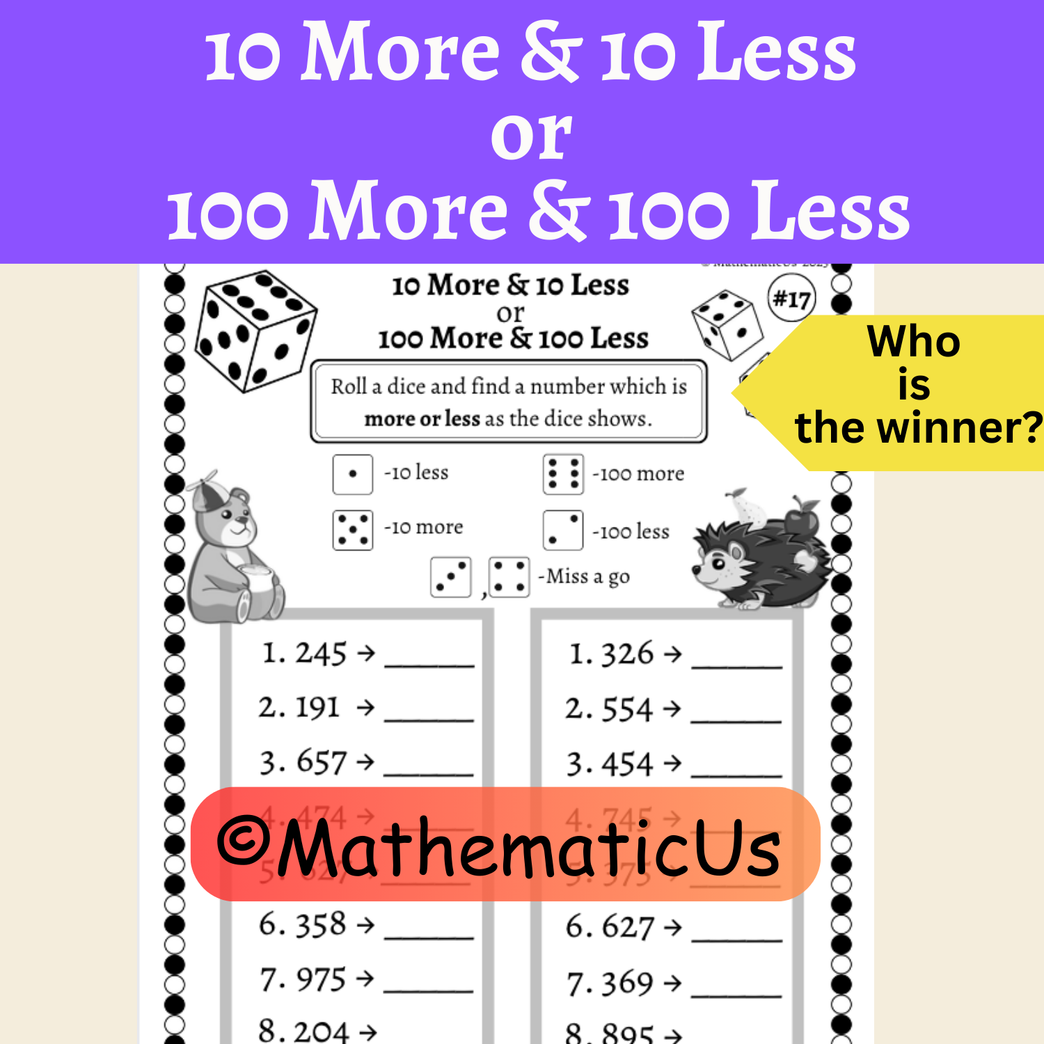 - 8 games "10 More & 10 Less or 100 More & 100 Less"