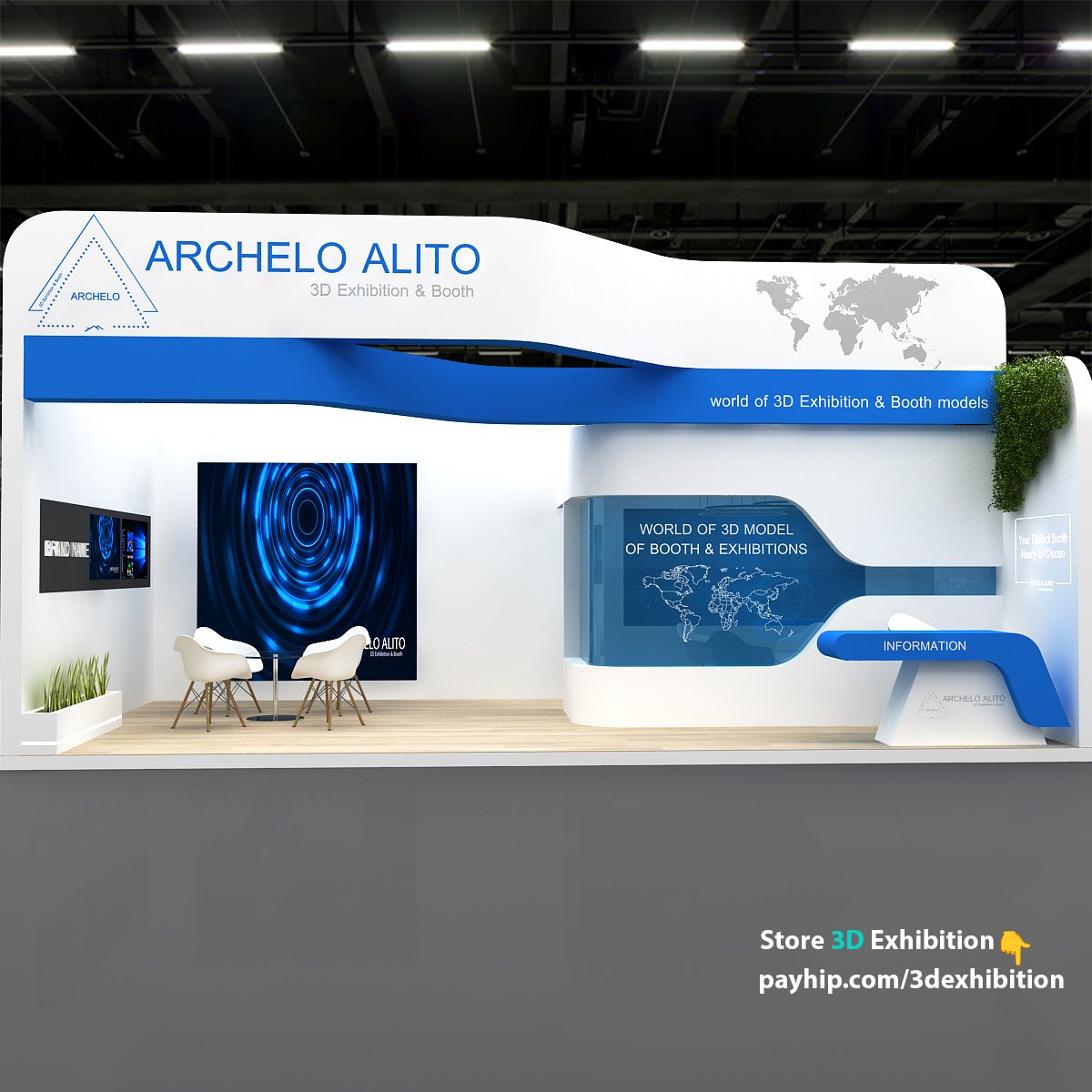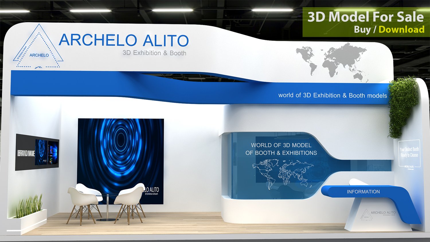 include design all necessary area in Exhibition and Booth Such as Vip and Storage and Counters and also Stand for productsFormat: 3DsMax (all version from 2016) / FBX /OBJ/
