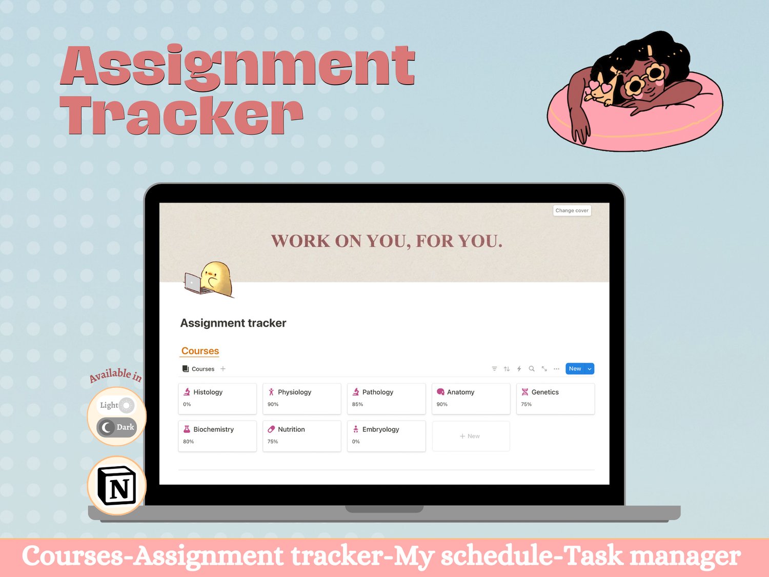 Notion student template, notion school template, notion student template, notion schedule template, Assignment tracker template, assignment tracker, notion assignment tracker, Notion template, assignment tracker, academic planner, college organization, study aid, productivity tool, Notion productivity, academic success, student resources, time management.