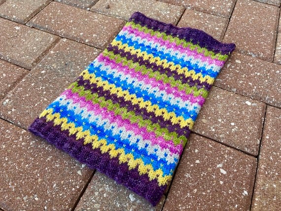 Love the colorwork portion of the Xenolith hat and want more of it? Then this cowl is for you. Designed to be knit with a set of fingering weight mini skeins or half skeins, this cozy cowl has all-over patterning that is easily adapted to as few as two colors and as many as you’d like.