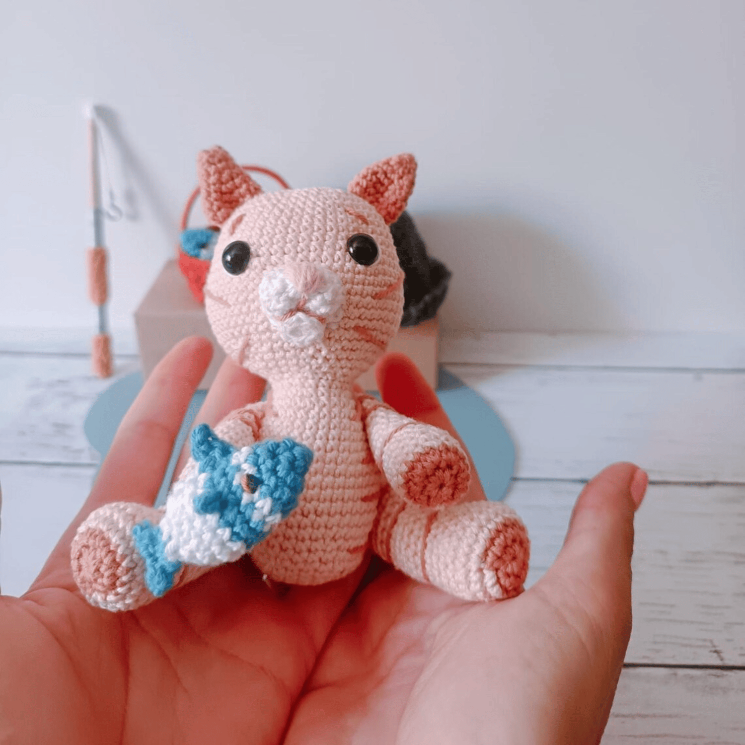 🐾 **Teje a tu propio gato pescador con este adorable patrón amigurumi en PDF.**