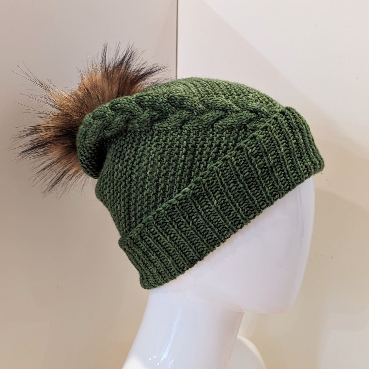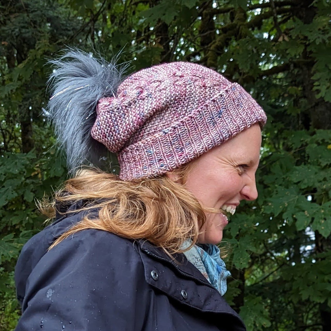 Vincenzio Viviani, a mathematician and disciple of Galileo, dedicated his life to the exploration of geometry and the relationships inherent in everyday shapes. The essence of this pattern, named in his honor, is its unusual parallelogram construction. It explores an unexpected twist in the relationships of this hat’s familiar shape. As I was working on a bias-knit piece, it dawned on me how easy it would be to create a cylinder by simply seaming the two short ends together. Out of this realization came something different: Viviani. The garter ridges and braided cable run diagonally up the hat for a unique look. The piece is first knit flat as a parallelogram. Then the short ends are grafted together into a cylinder and the crown of the hat and ribbed brim are added. To help the cable stand out use a solid or tonal yarn. Yarn with speckles or that is primarily solid will work as well, but any significant variegation in the colorway can muddy or hide the cable. A single 100g skein of DK weight yarn should be enough to complete the whole hat.