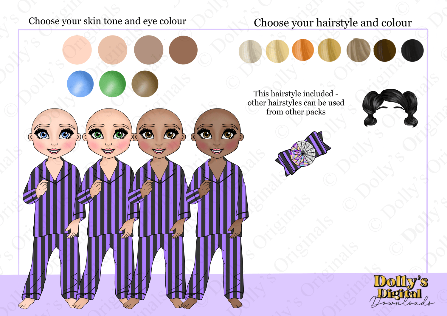 1 Hairstyle included, hairstyles from other packs can also be used.