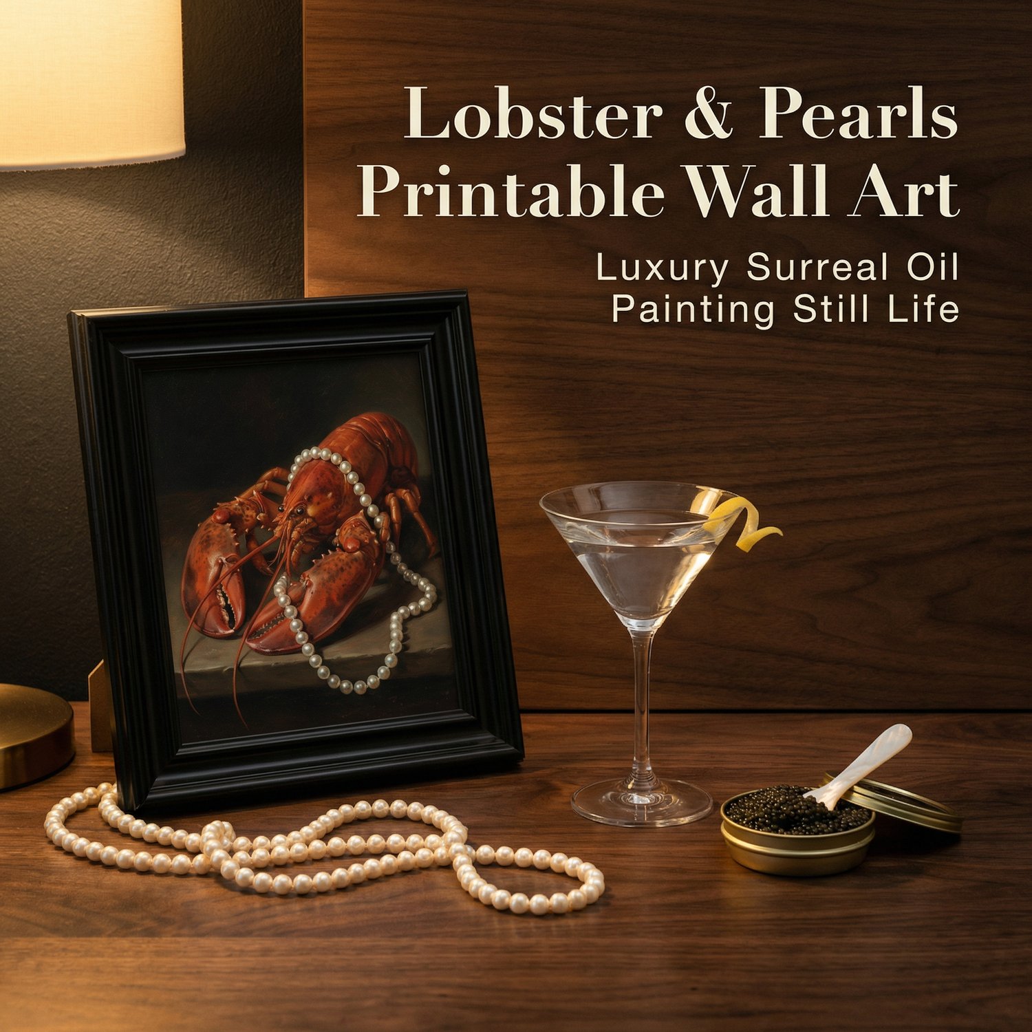Lobster & Pearls Printable Wall Art | Luxury Surreal Oil Painting Still Life |