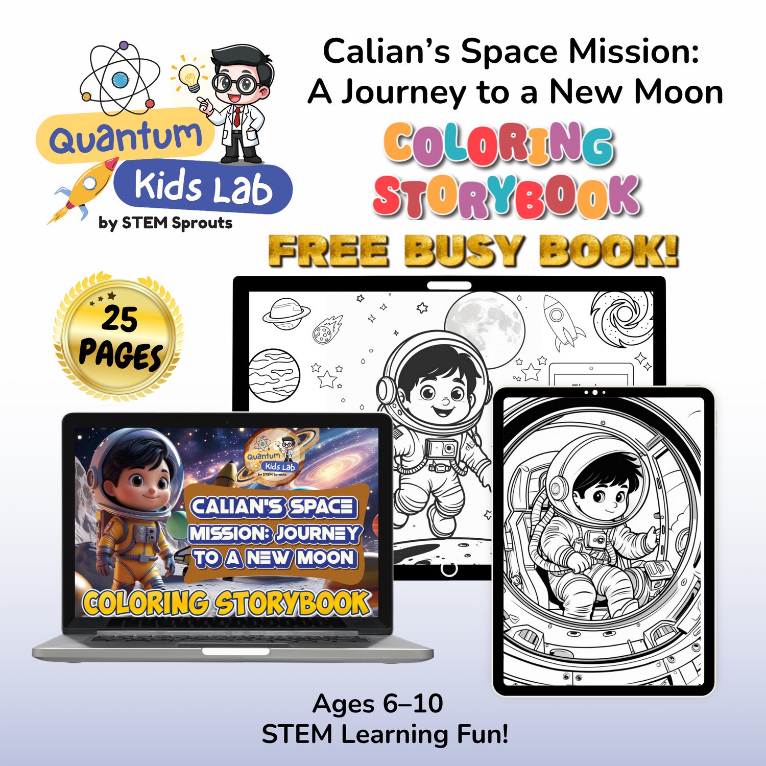[QUANTUM KIDS LAB] Calian's Space Mission: A Journey to a New Moon (Coloring Storybook) STEM-Based, Ages 6β10